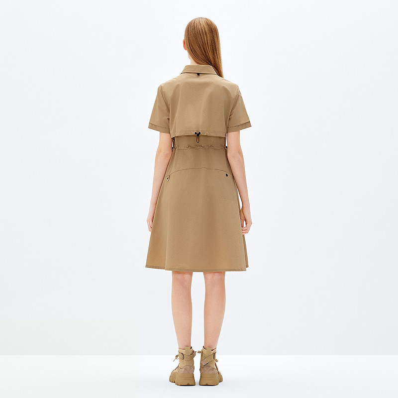 十二篮大伞摆工装风收腰连衣裙