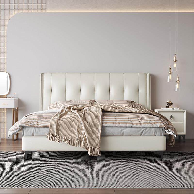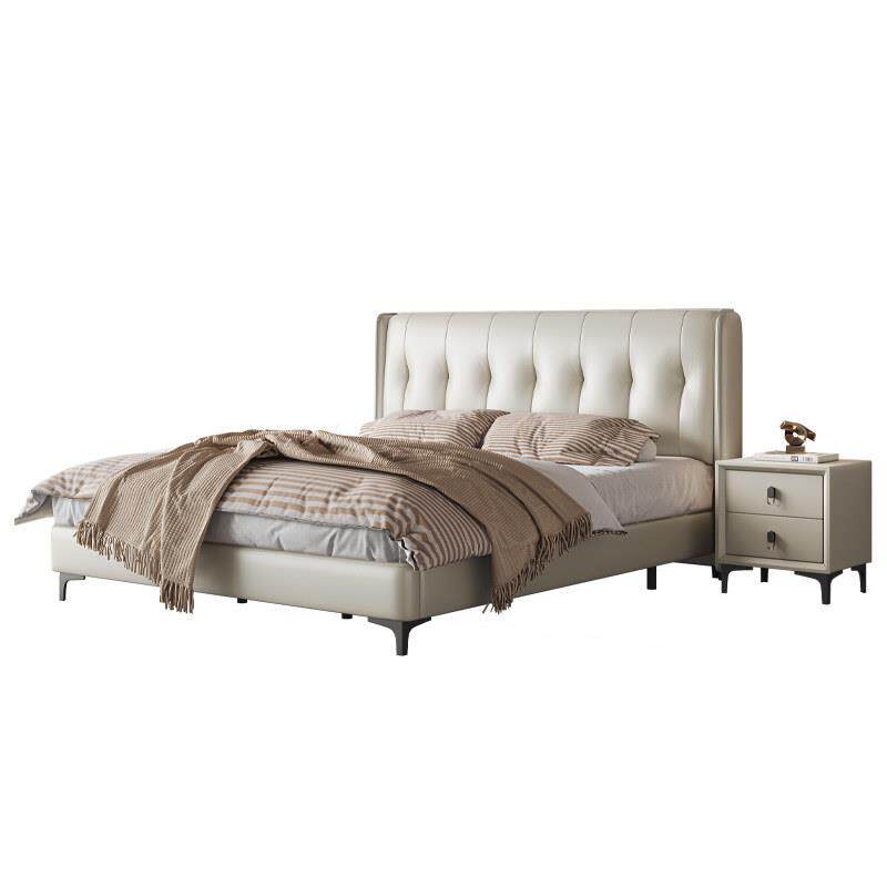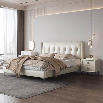意式极简轻奢皮布艺床双人床主客卧1.5米1.8米2米婚床软包床高脚