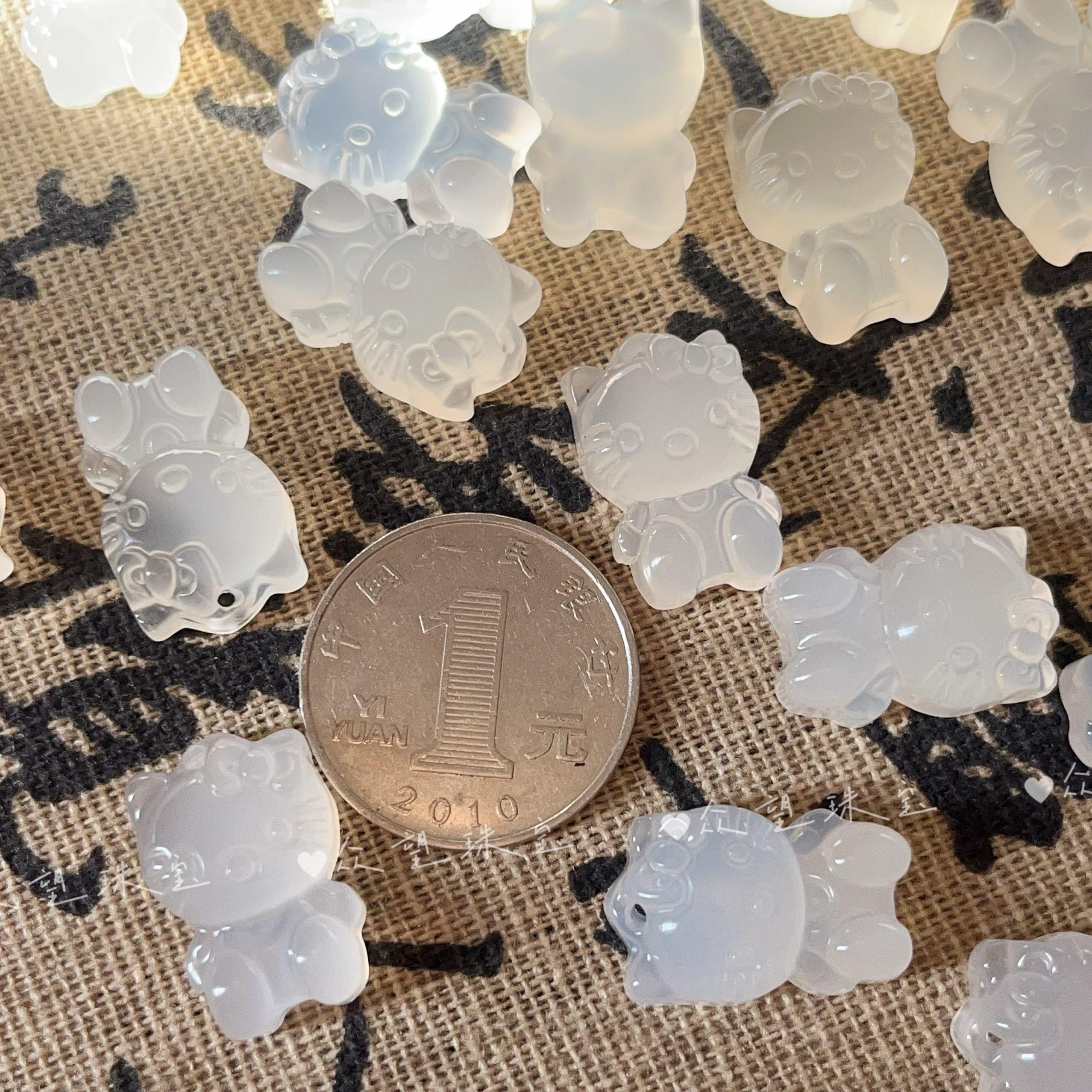 天然冰种玉髓hellokitty猫玉吊坠玛瑙招财猫挂件玉石锁骨项链配件