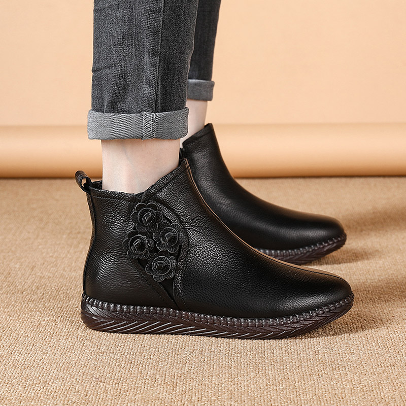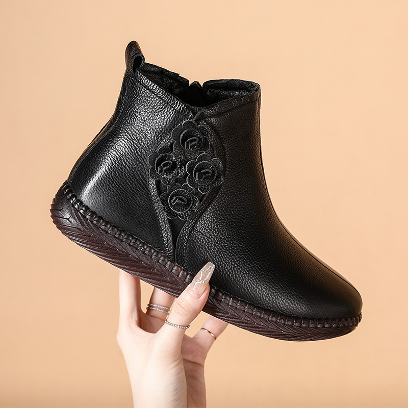 薏尔康真皮棉鞋秋冬季加绒保暖妈妈鞋防滑软底短靴中老年人皮鞋女