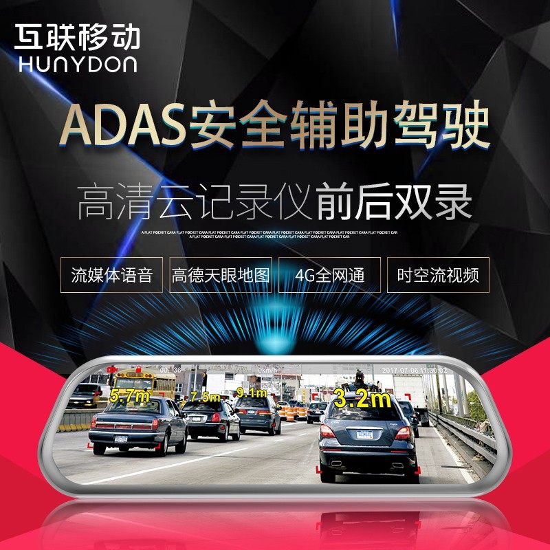 互联移动4G全屏流媒体智能后视镜导航行车记录仪双镜头全景一体机