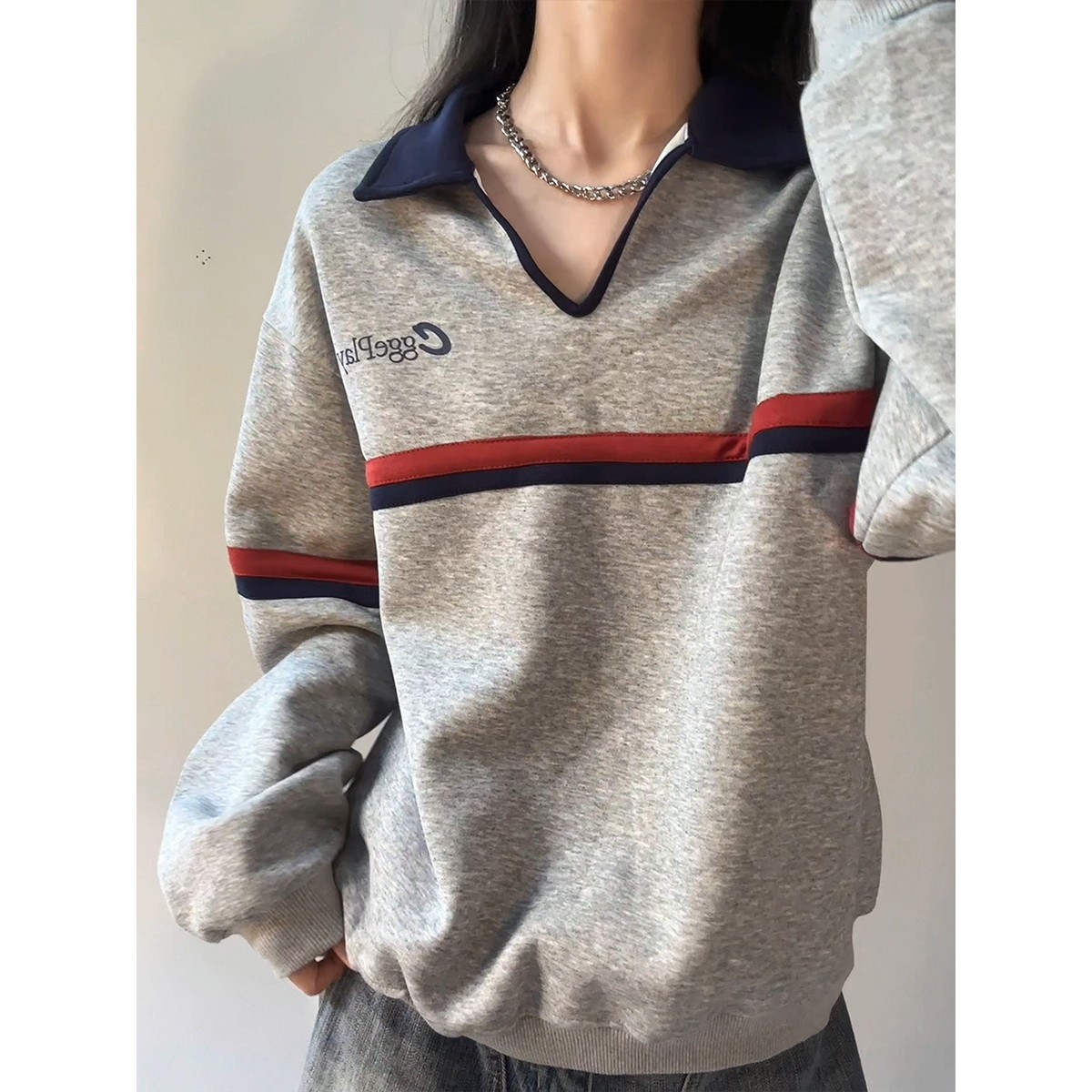 美式复古重磅卫衣男款秋季撞色拼接条纹长袖t恤正肩v领内搭打底衫