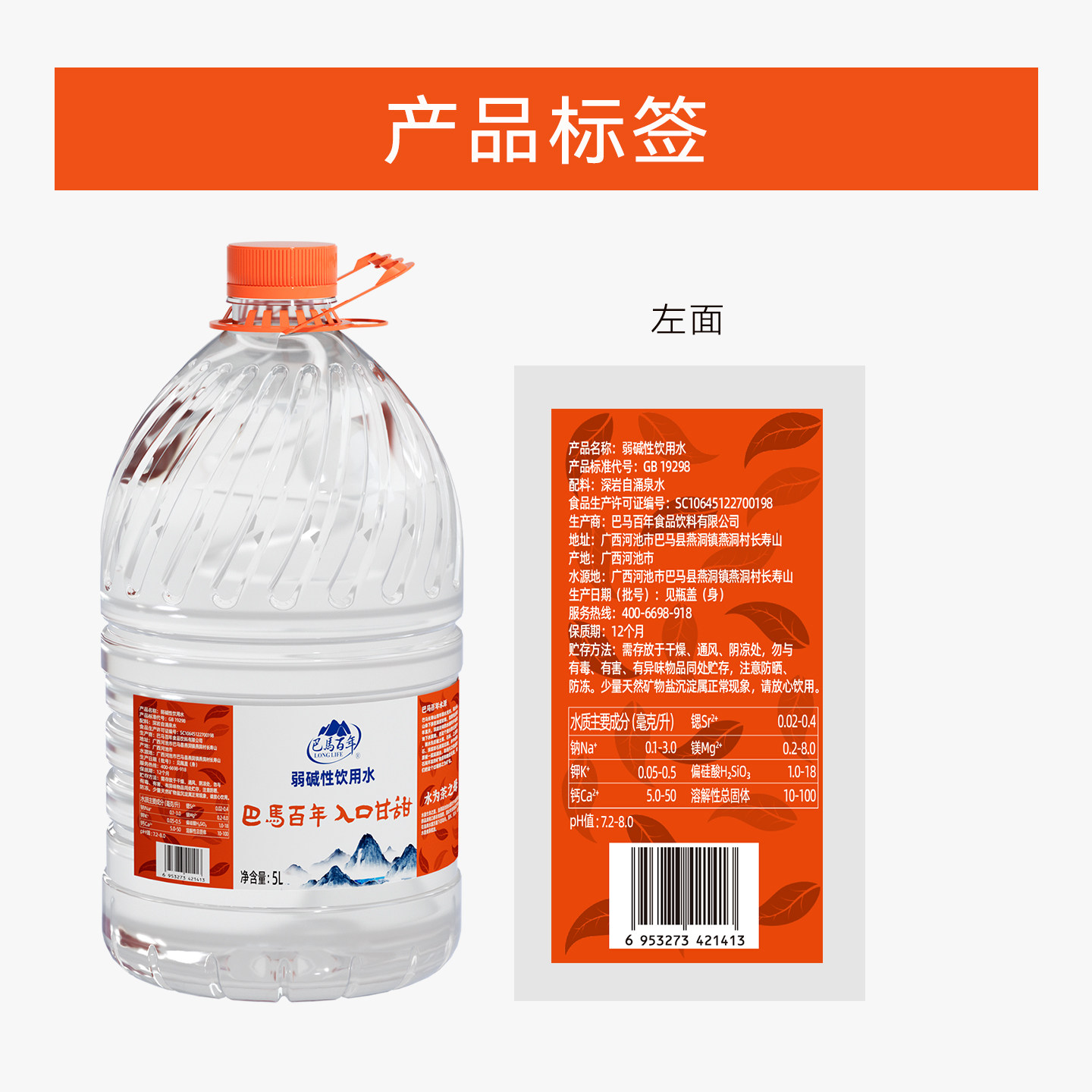 巴马百年弱碱性天然山泉水5L*2桶