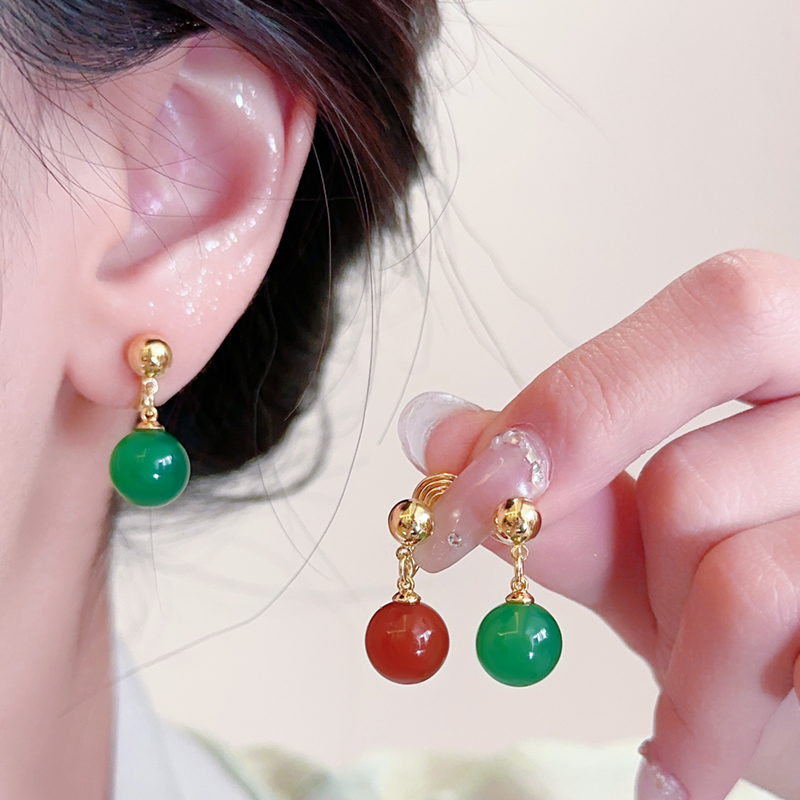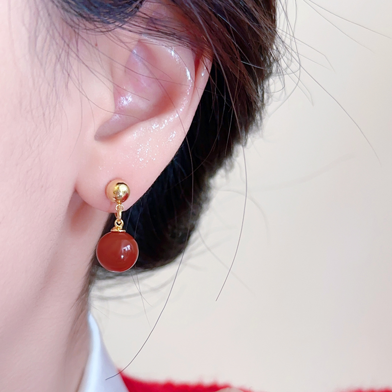 「好运常在」红色玛瑙新年耳环蚊香盘耳夹女无耳洞耳饰轻奢高级感