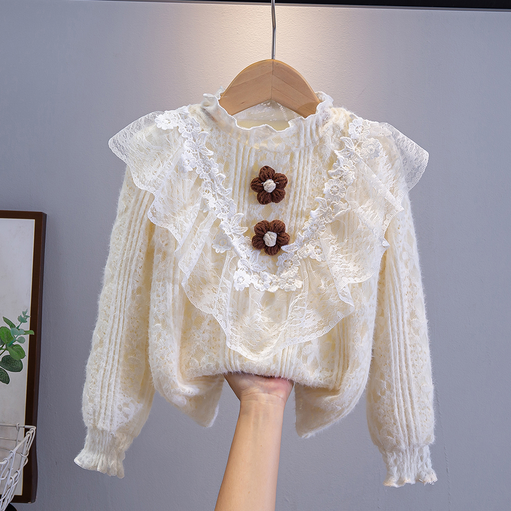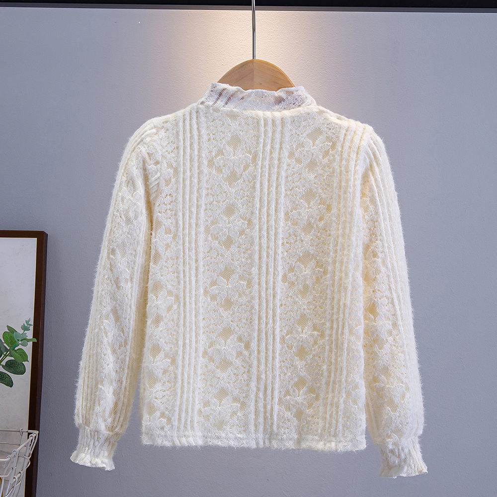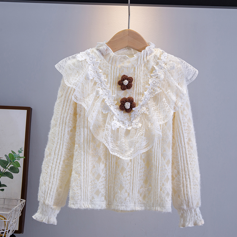 女童打底衫春秋外穿儿童半高领花边上衣小女孩秋冬加绒内搭衣长袖