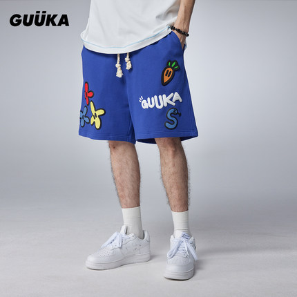 GUUKA&Agaho联名蓝色重磅短裤男夏季新款 美式沙滩五分裤宽松裤子