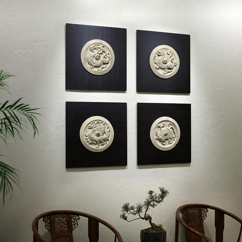 新中式古典创意镇宅招财壁饰客厅茶楼会所酒店挂件墙饰壁挂四神兽