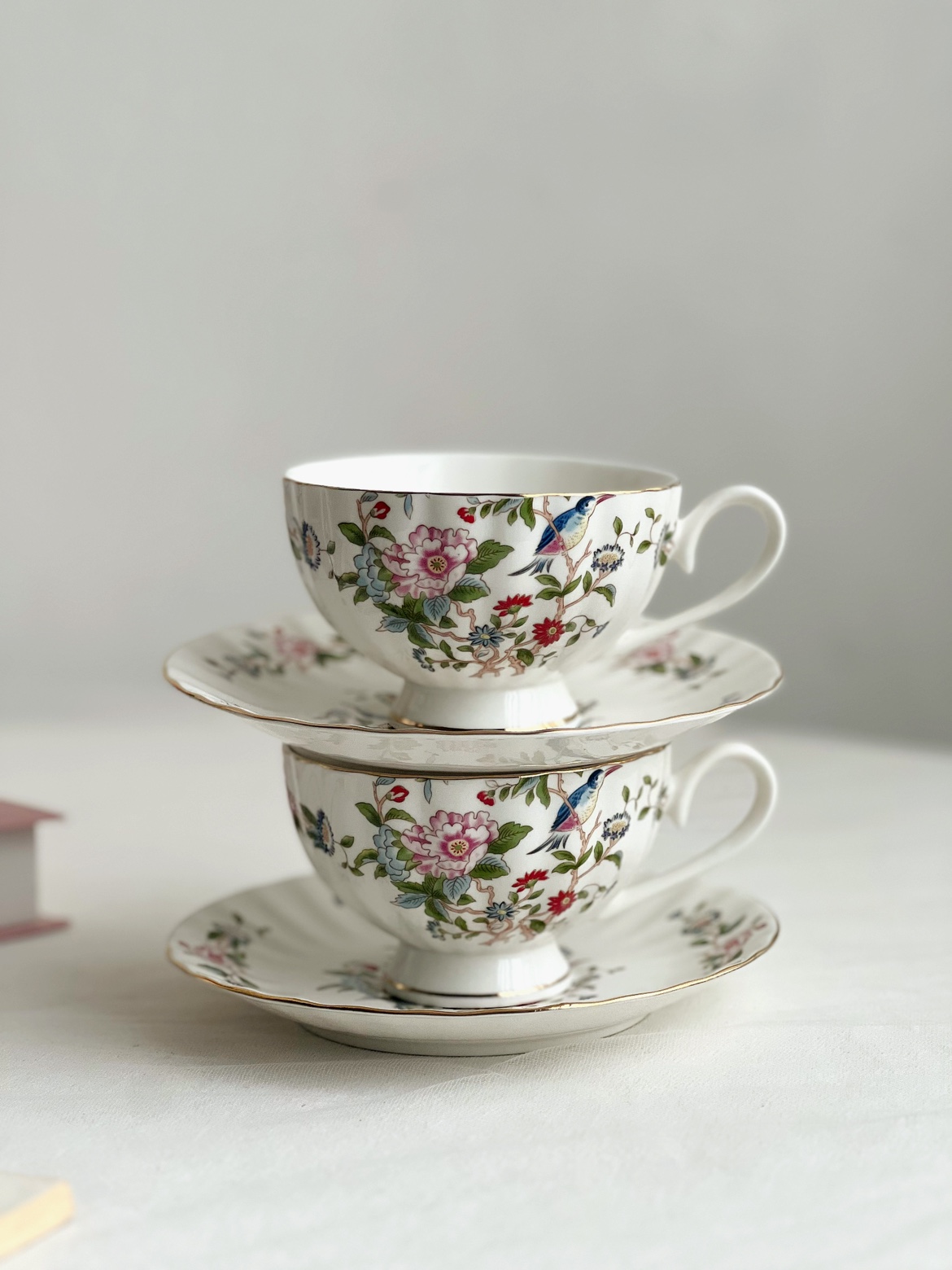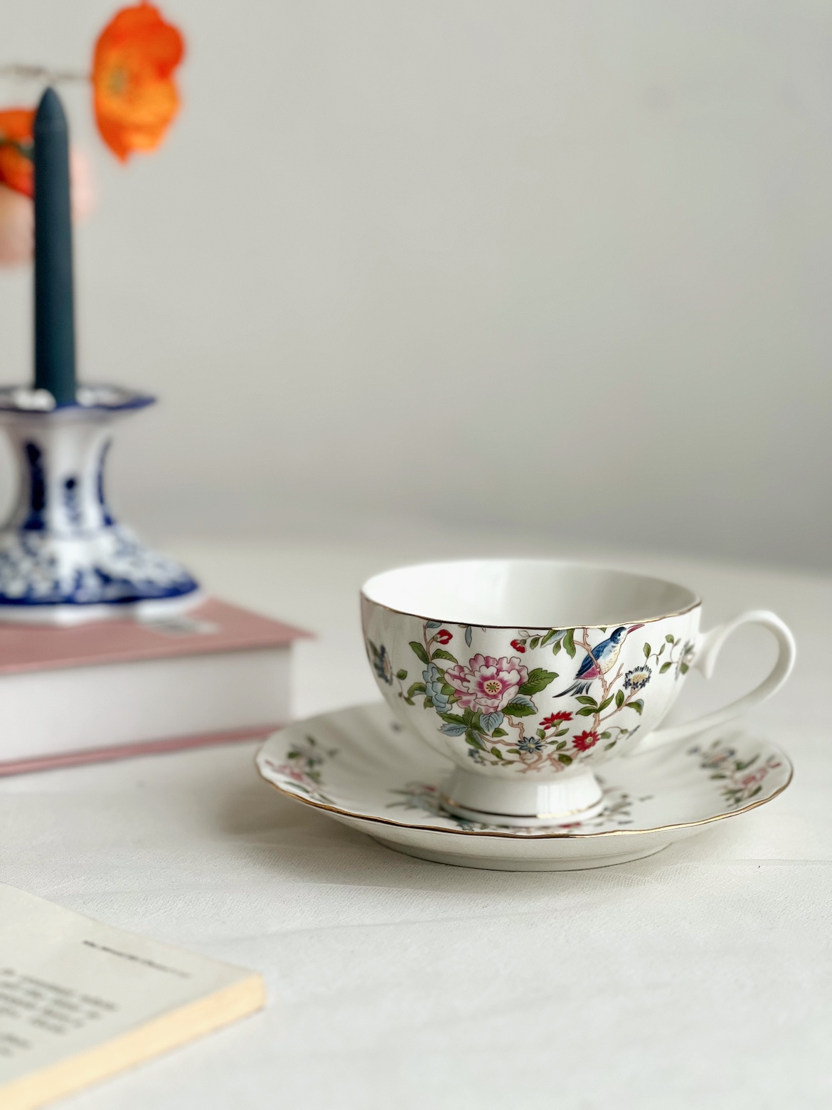 人间富贵花雀鸟系列欧式复古陶瓷咖啡杯气质优雅咖啡杯碟一套