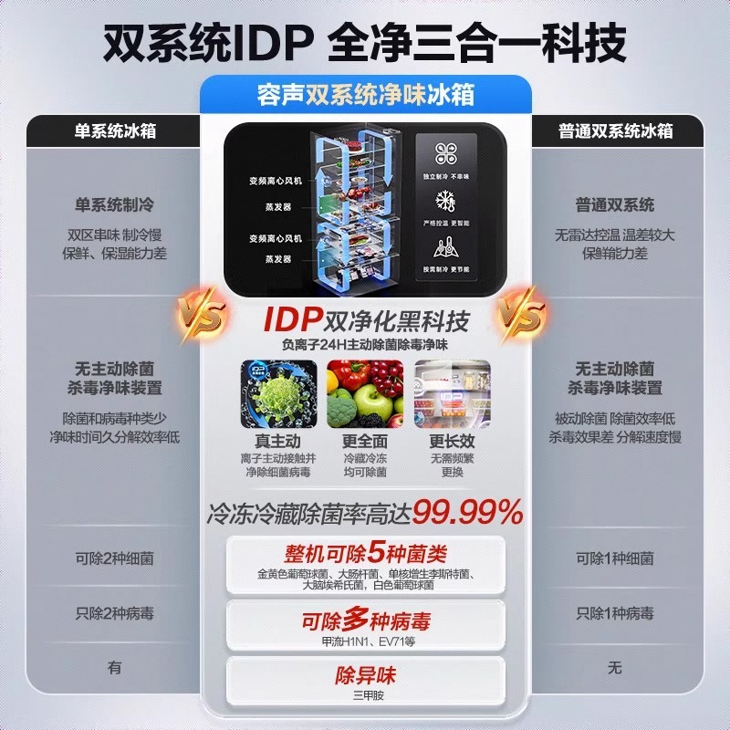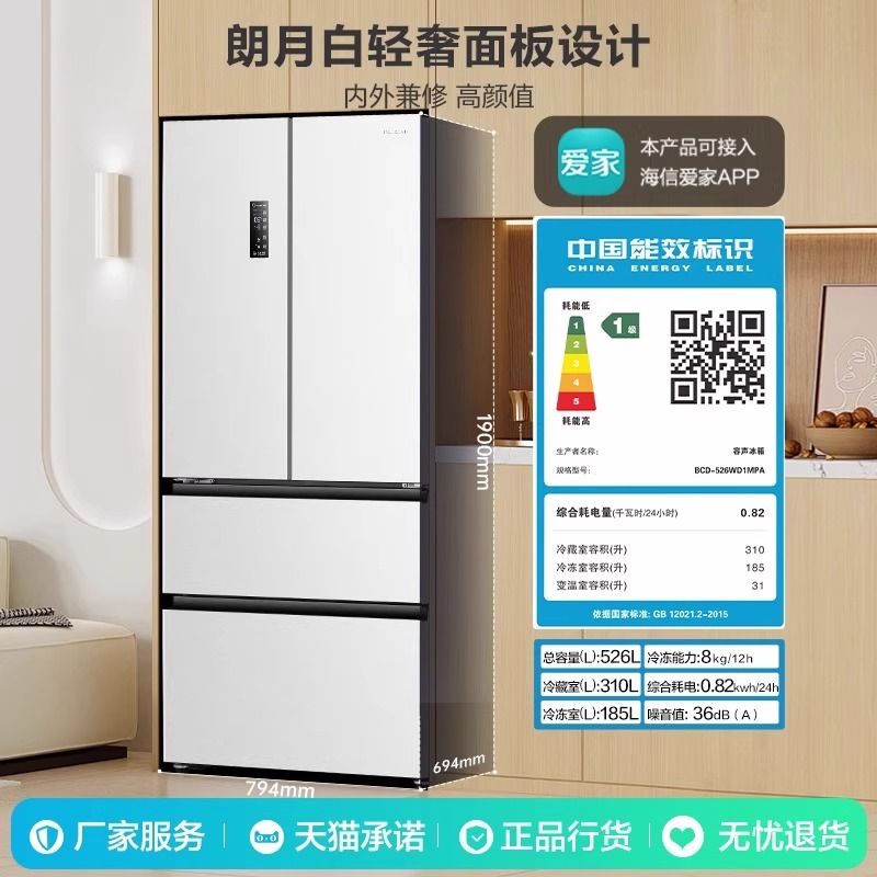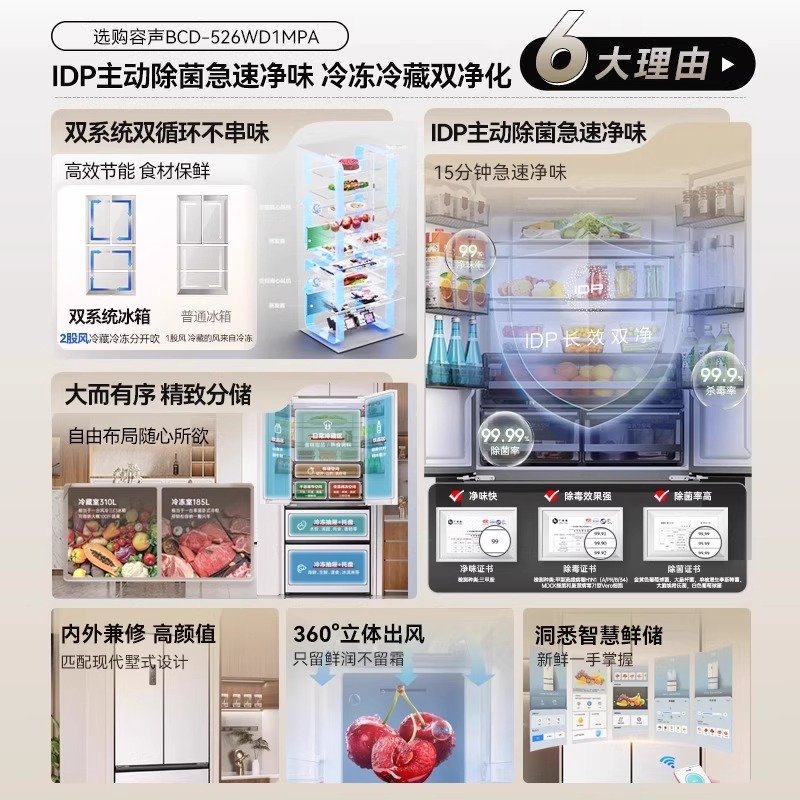 【政府补贴】容声526L双净双系统循环法式冰箱家用一级能效白色
