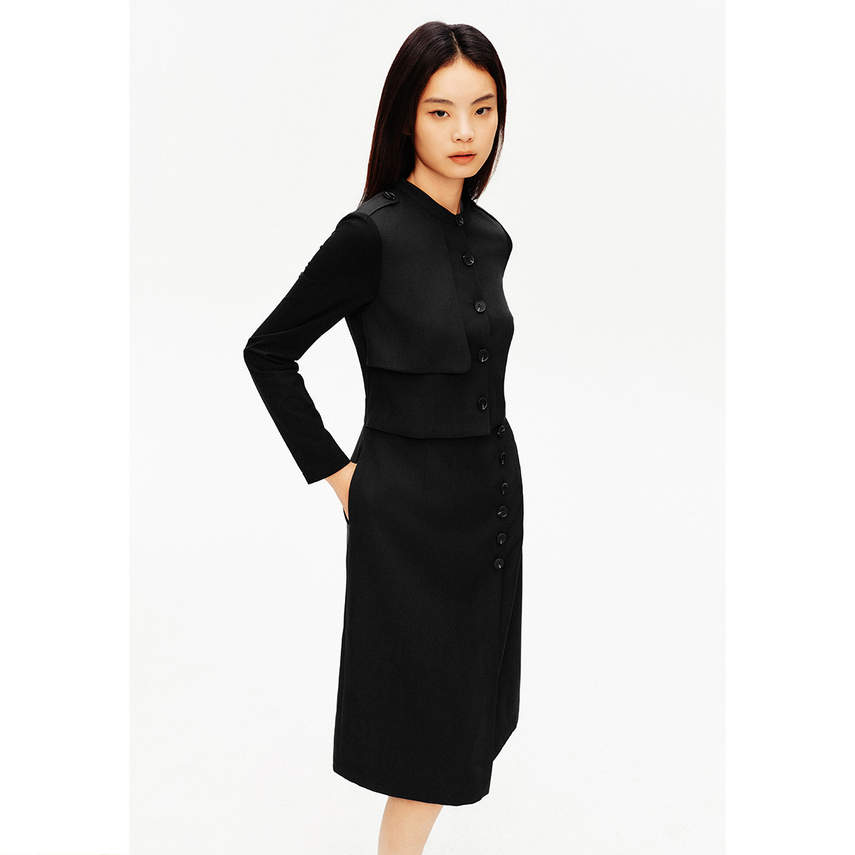 诗篇专选2024春款针织拼接假两件立领设计感通勤连衣裙
