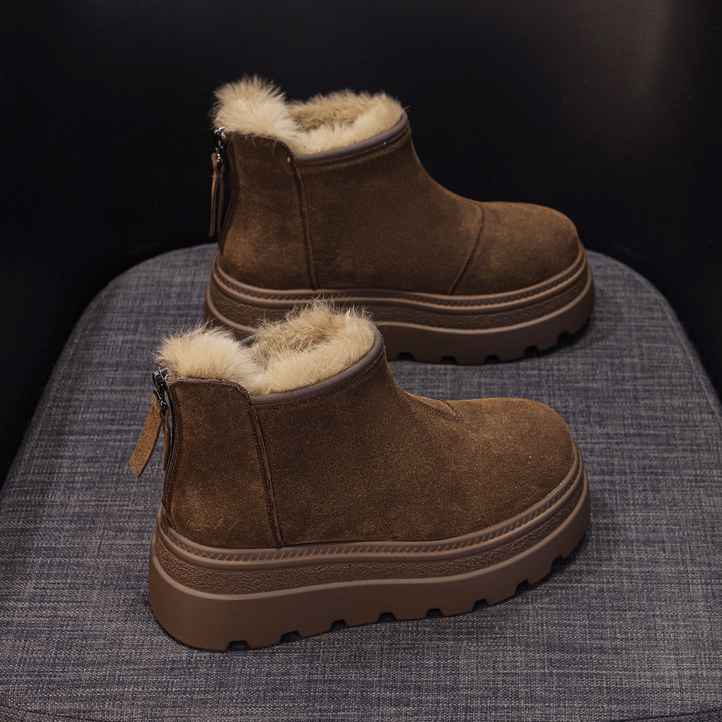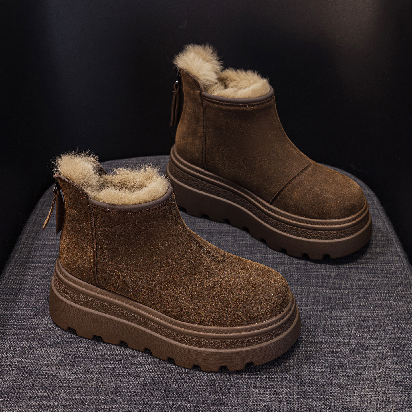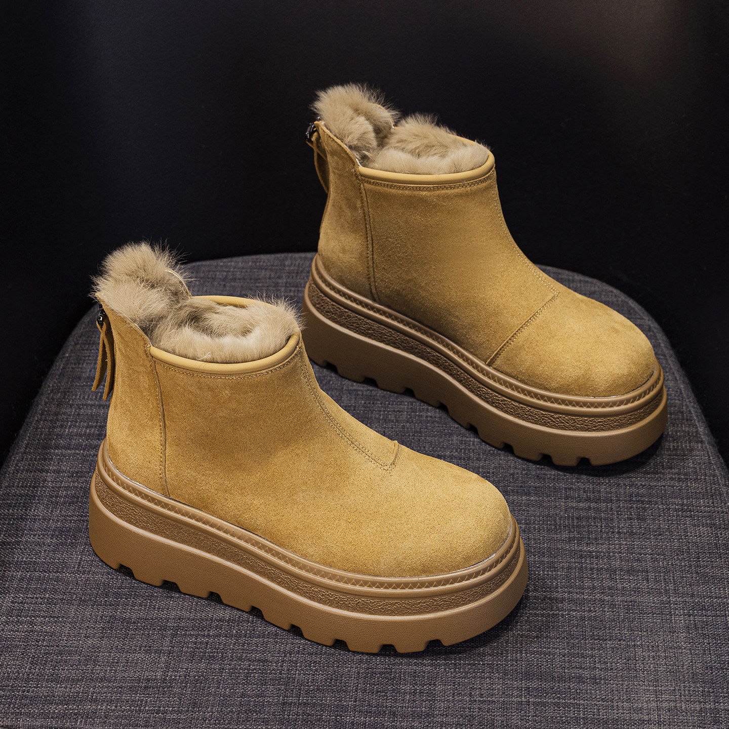 皮毛一体雪地靴女鞋2025冬季新款爆款厚底内增高加绒保暖高帮短靴