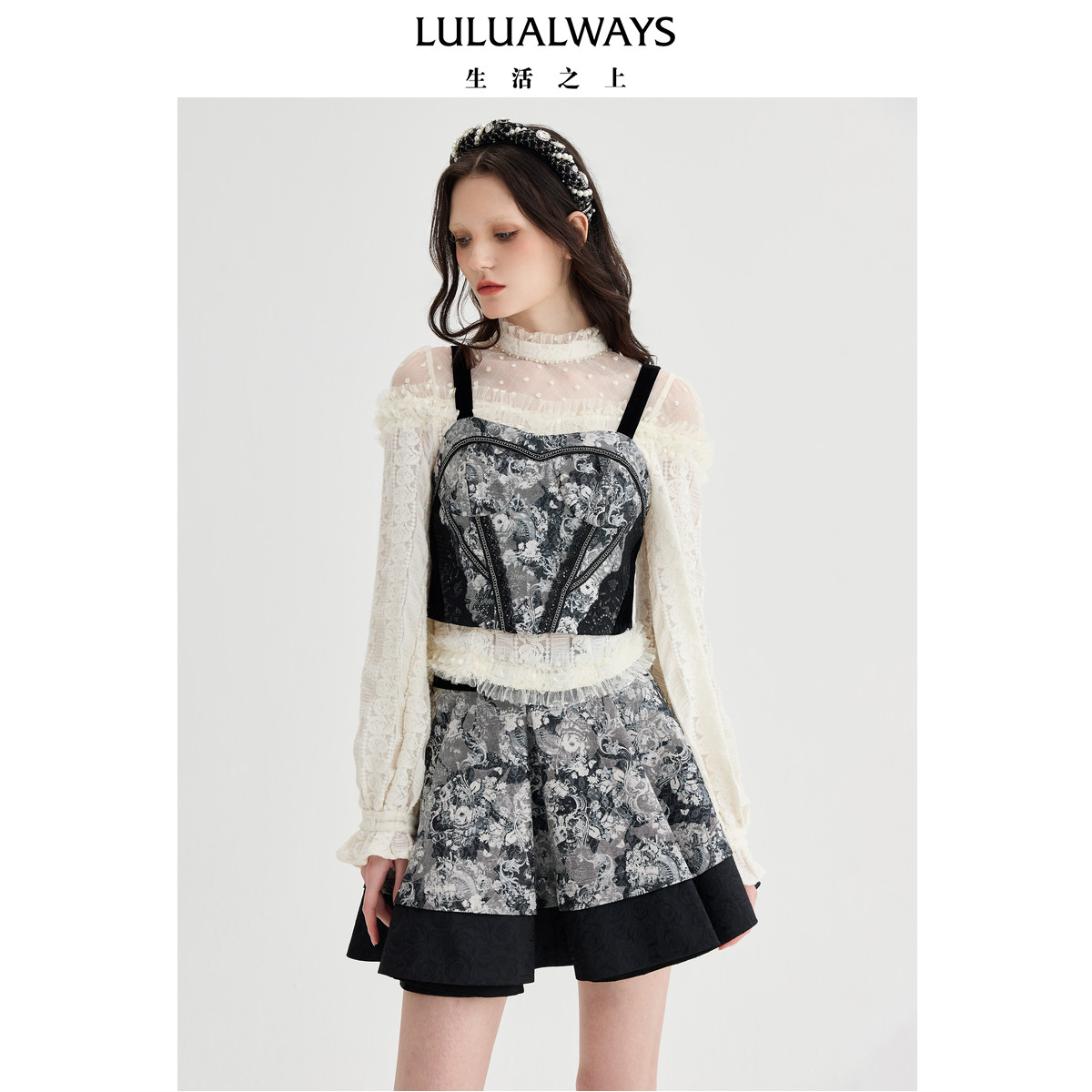 LULUALWAYS【商场同款】简约经典百搭小众提花拉链吊带