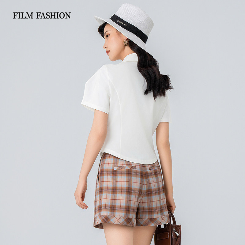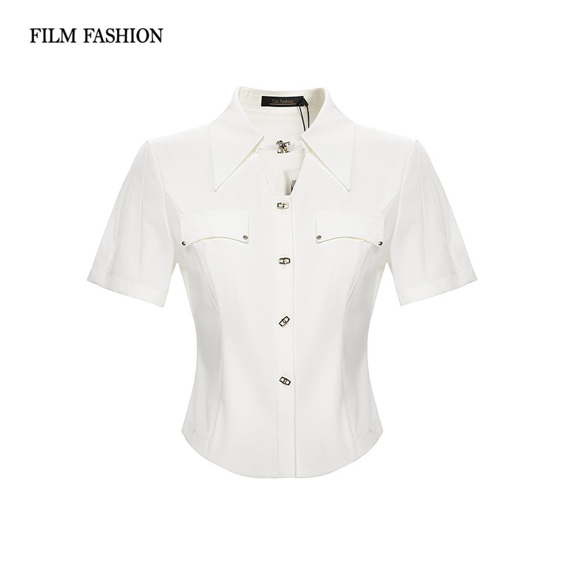 一电影一时装夏季新款休闲通勤梭织特工镂空衬衫短款上衣女