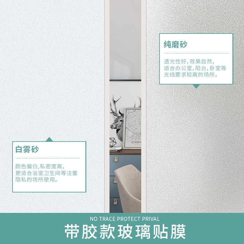 【白磨砂】卫生间防窥膜浴室玻璃贴纸透光不透明厕所窗户贴膜隐私