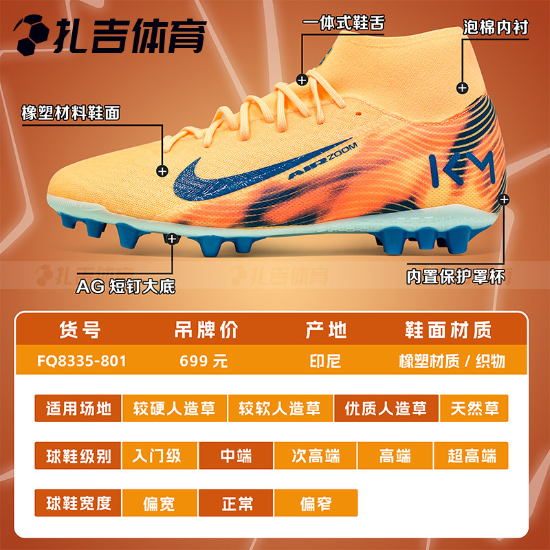 扎吉体育NIKE耐克刺客16中端AG姆巴佩高帮人草男足球鞋FQ8335-801