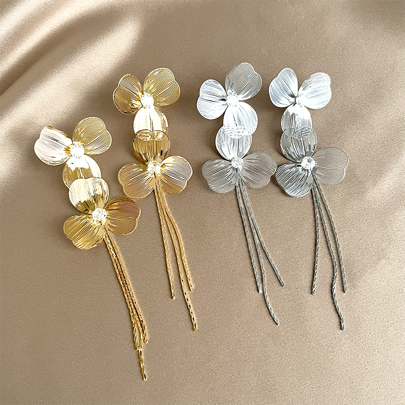 金色花朵流苏螺旋耳夹女士无耳洞新款轻奢高级感气质耳环独特耳饰