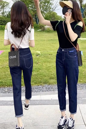 爆款高腰牛仔九分裤哈伦裤2026春秋新款休闲显瘦牛仔直筒裤老爹裤