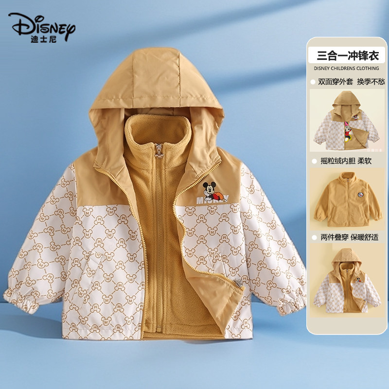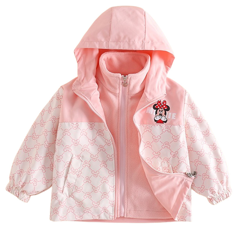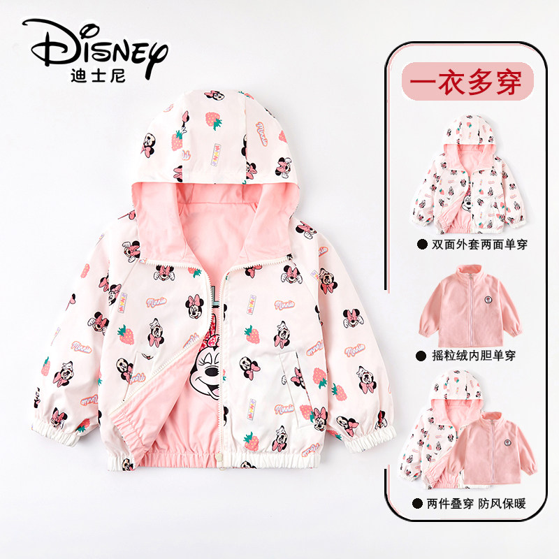 正版迪士尼童装女童冲锋衣女孩春秋外套中小童连帽休闲上衣防风衣