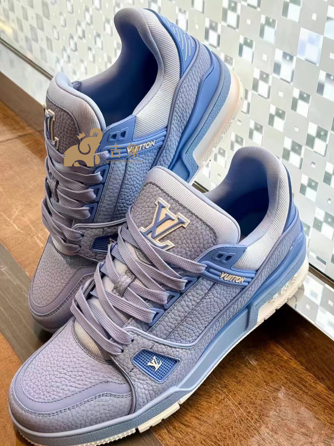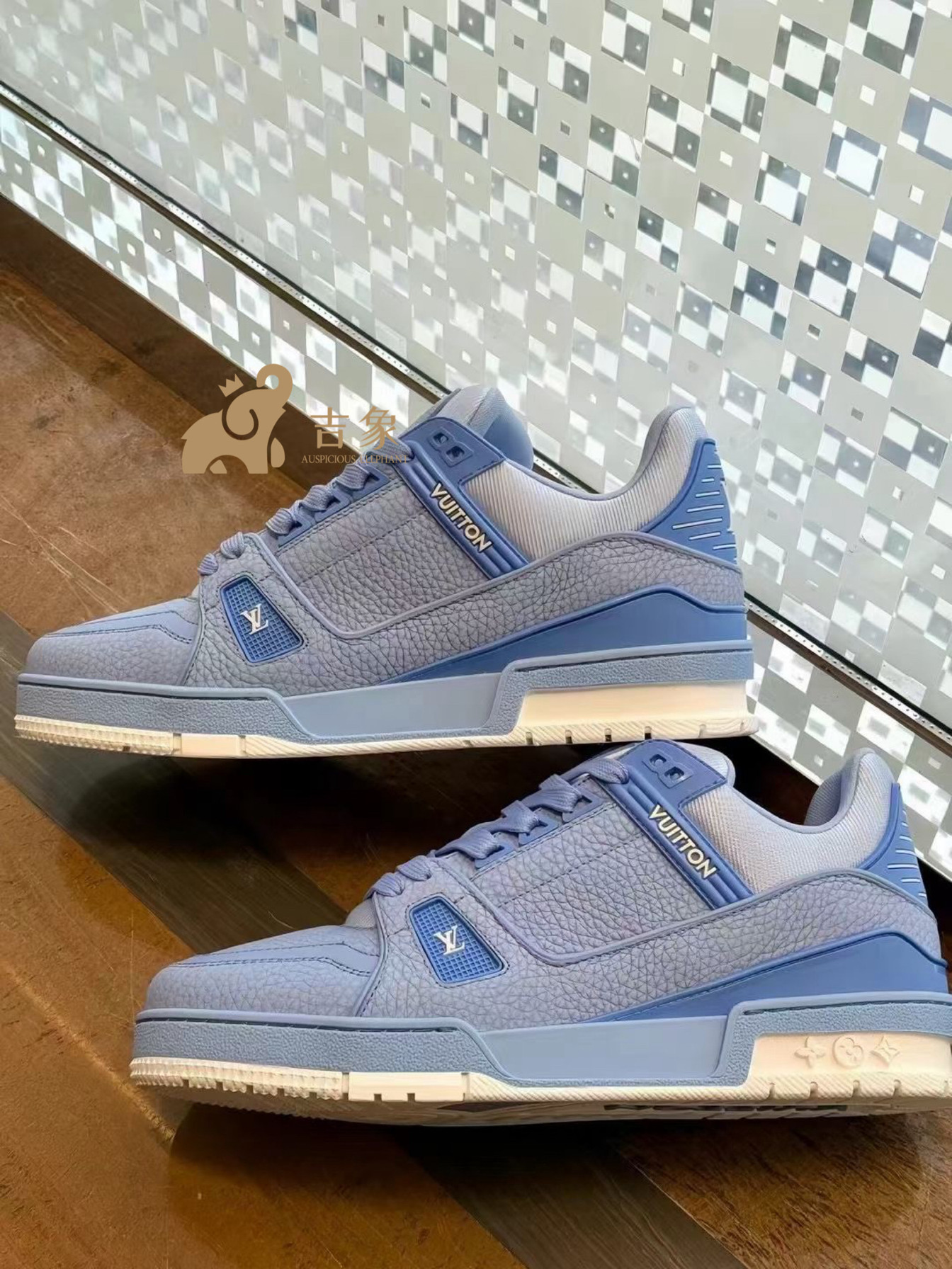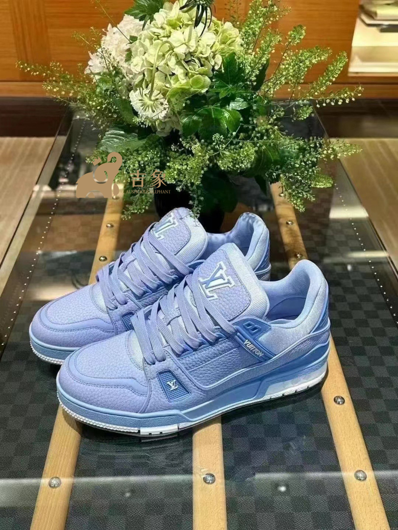 Lv路易威登2024新款男女同款蓝色牛皮革Trainer 运动鞋板鞋1ACQ6Y
