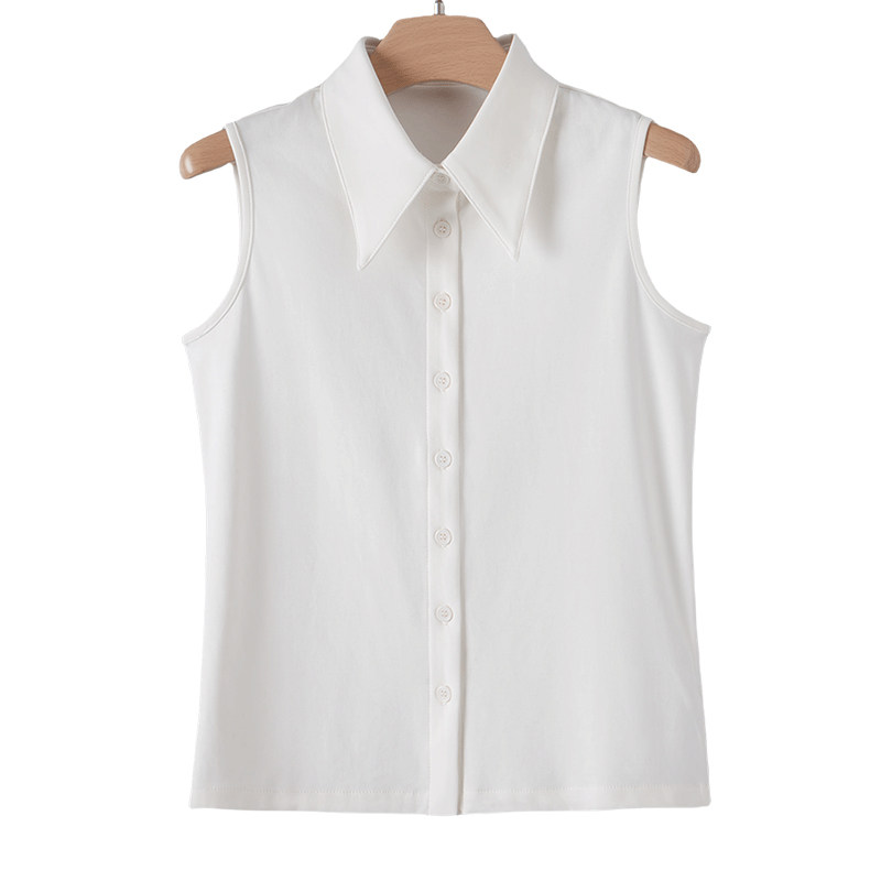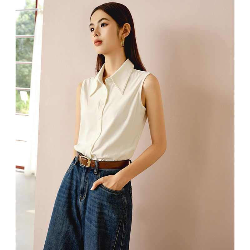 【叠穿内搭神器】晚白2026春米白色翻领柔软棉上衣无袖打底衬衫
