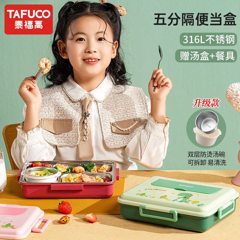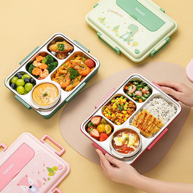 日本泰福高卡通316L不锈钢饭盒便当盒小学生分格餐盘儿童餐盒男女