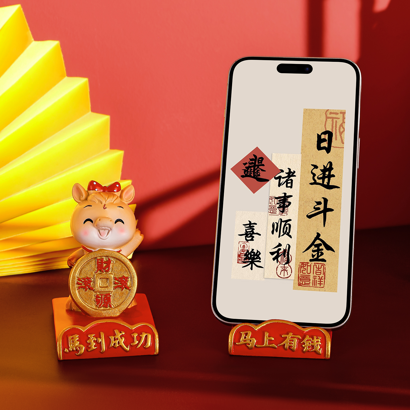 创意生肖马年手机支架摆件国潮办公室工位桌面装饰品生日礼物男女