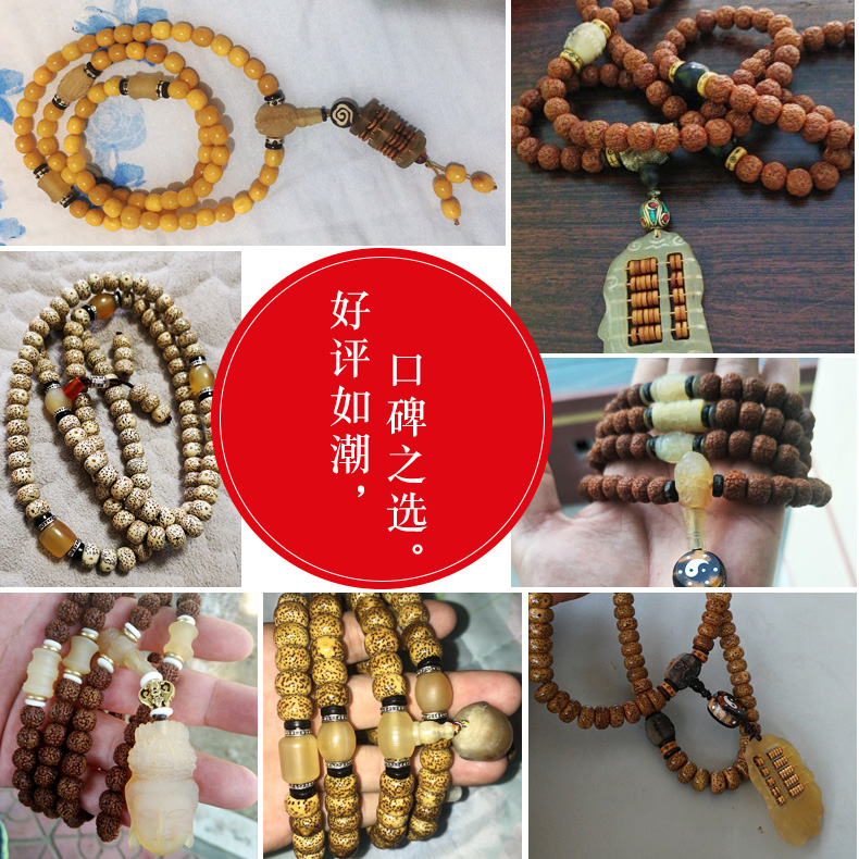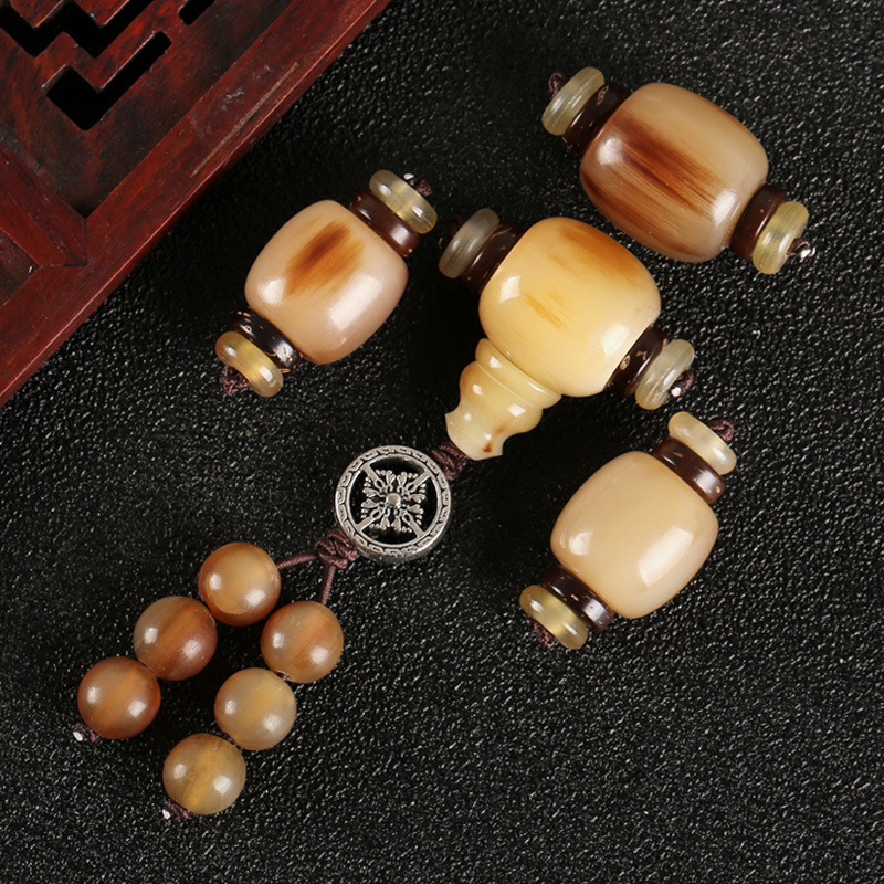 原创天然真牛角小金刚星月菩提配饰全四件套装套餐佛珠文玩手串