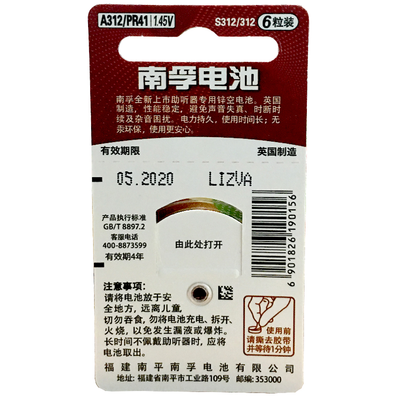 南孚助听器电池 锌空气1.45V电池 A312/PR41 A675/PR44 A10/PR70/PR536 A13/PR48纽扣电池老人耳背式