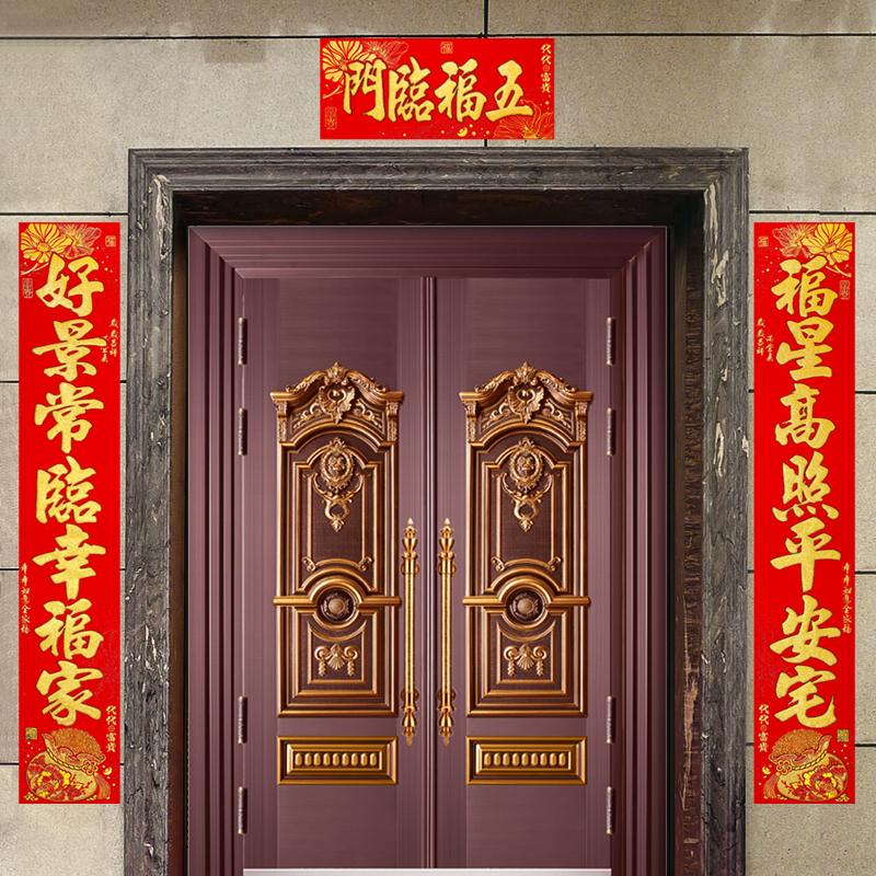 中传美春节装饰品植绒春联店铺开张生意开业门联公司新年对联自粘