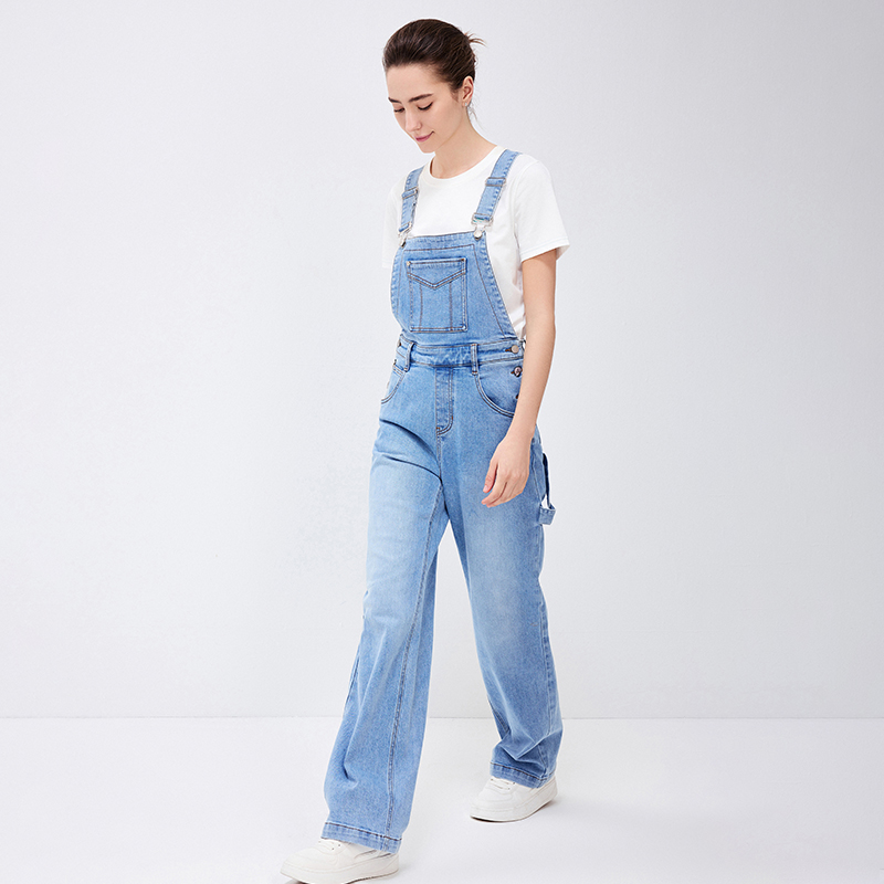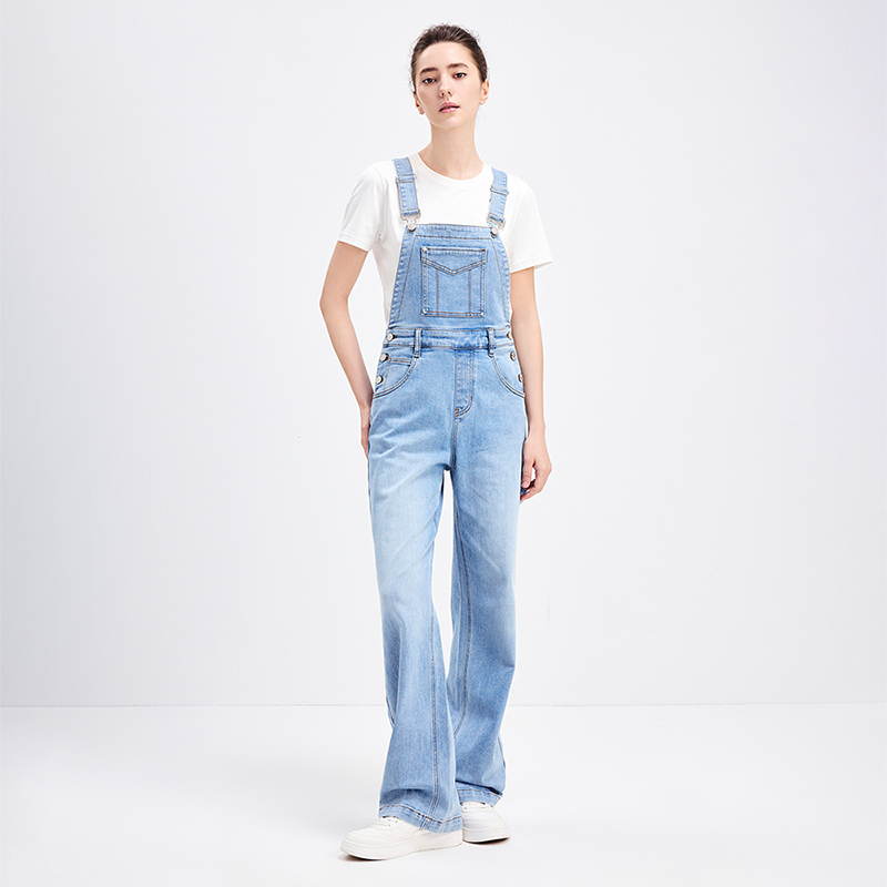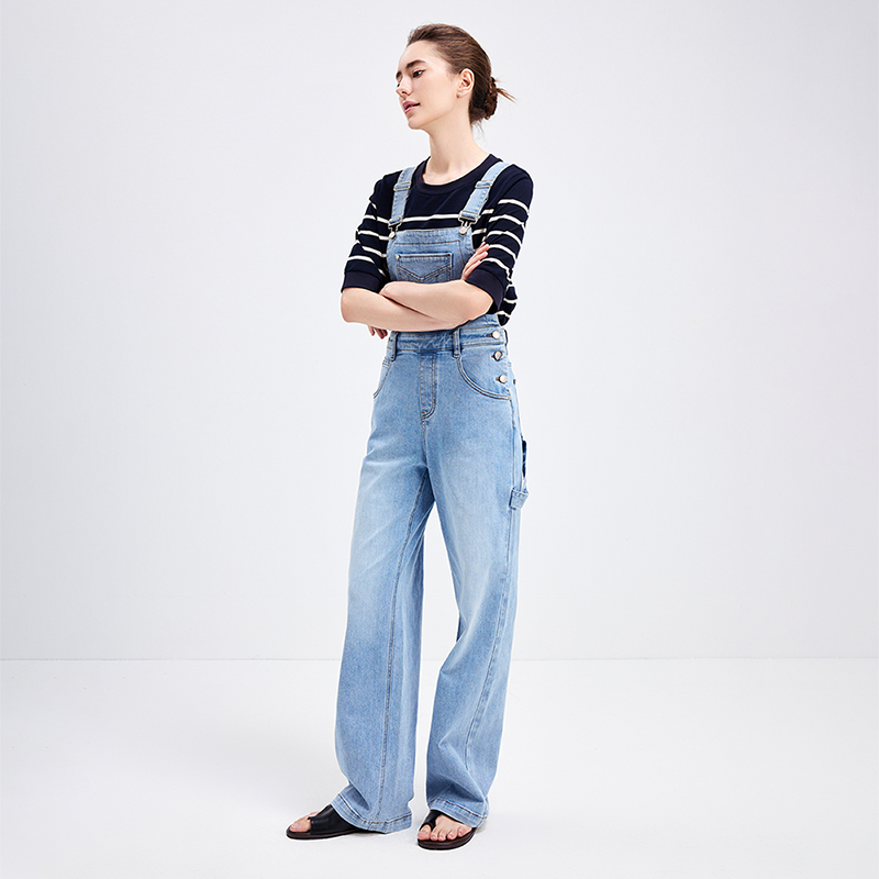Navigare意大利小帆船夏季蓝色复古背带牛仔裤女士直筒连体裤