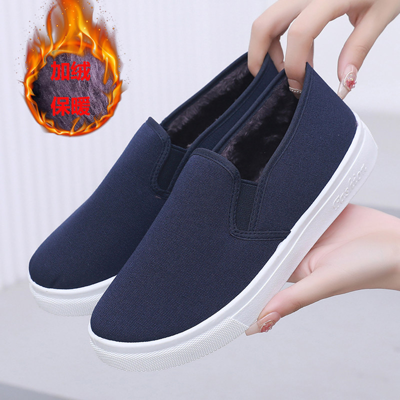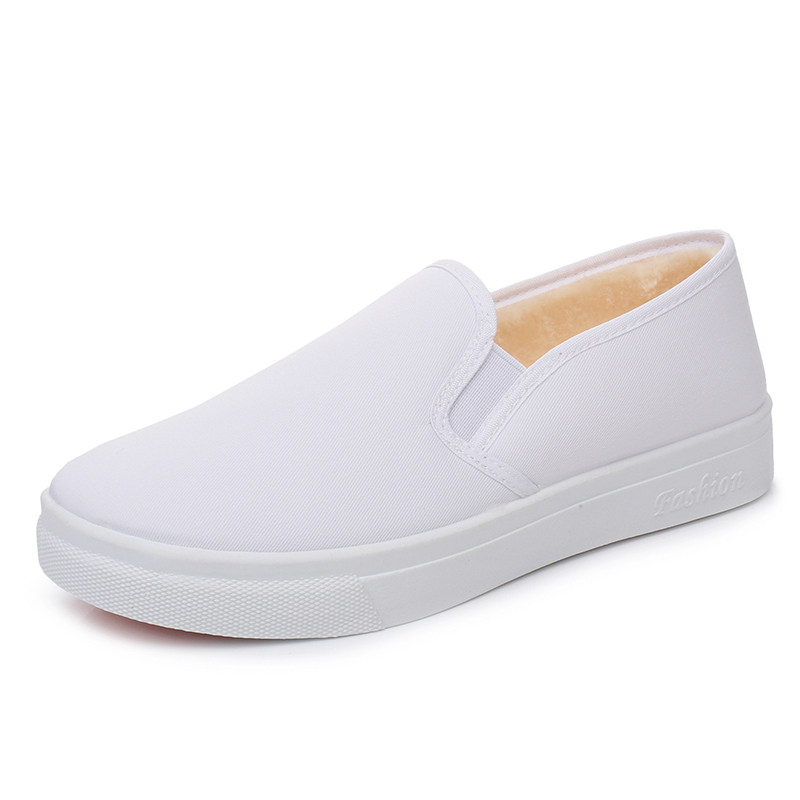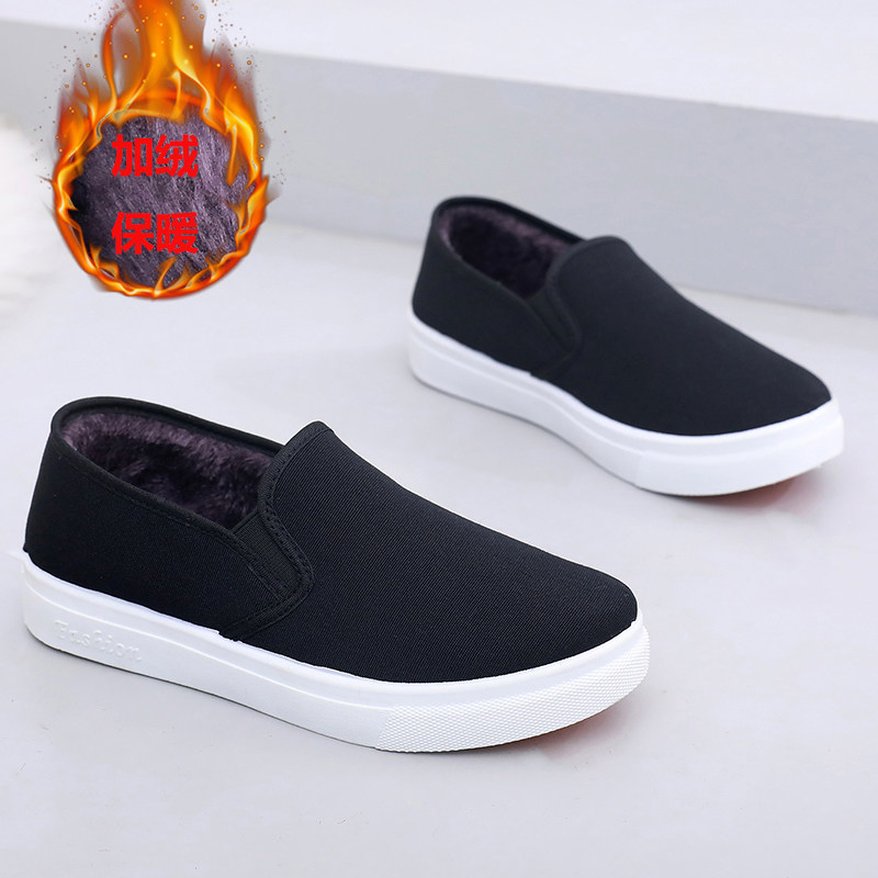 工作鞋女白色秋冬防滑休闲鞋轻便舒适加绒保暖白鞋软底老北京布鞋