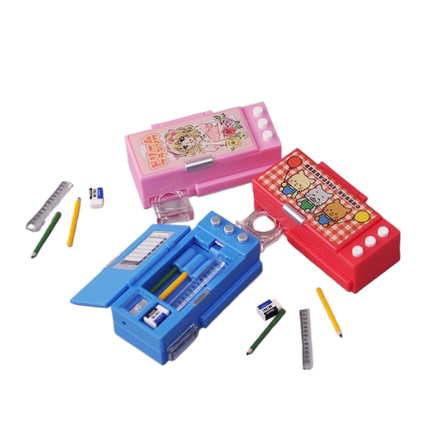 娃娃屋迷你文具盒微缩铅笔尺子橡皮模型仿真过家家玩具摆件铅笔盒