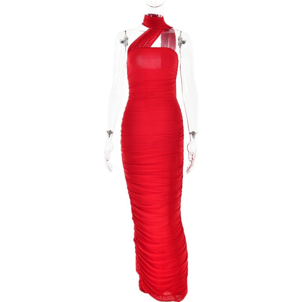 欧美外贸春夏季一字领无袖连衣裙女时尚百搭性感紧身露背长裙单件