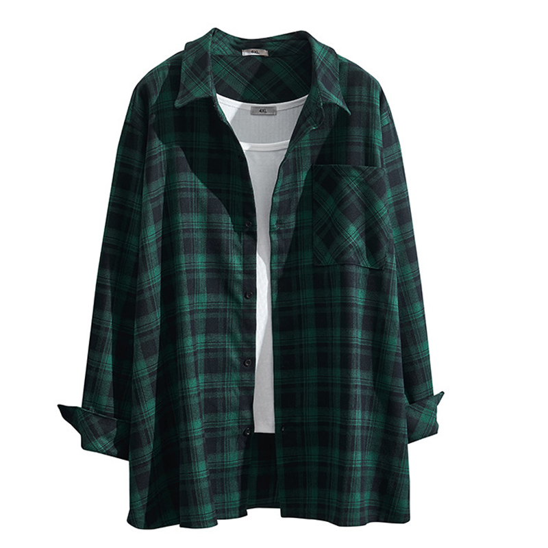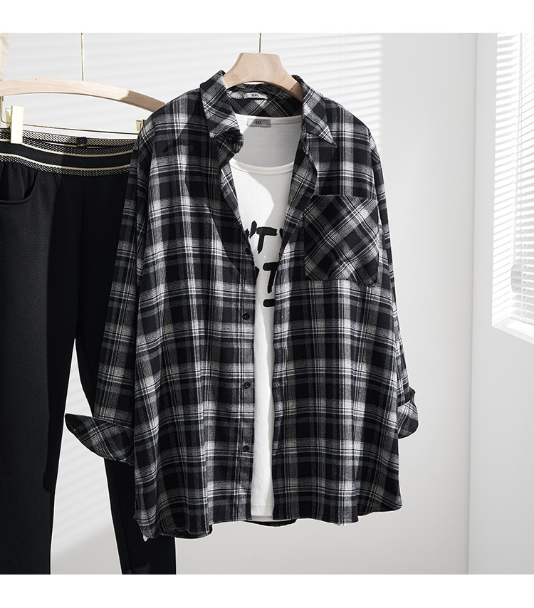 240斤特大码磨毛黑白格子衬衫女秋季200胖mm宽松加肥遮肚百搭外套