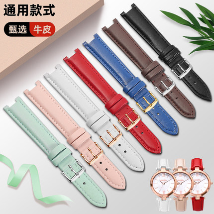 真皮手表带女适用天梭古驰格雅西铁城罗西尼阿玛尼芙丽MK凹口皮带