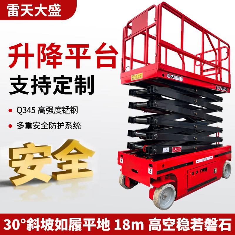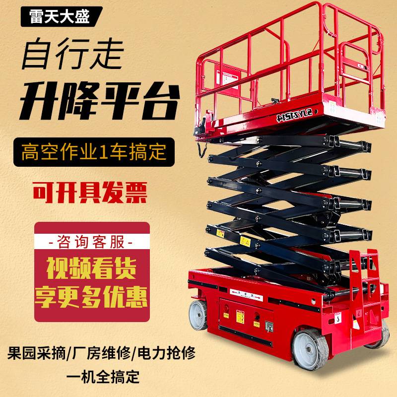 电动遥控剪叉式高空作业车自行走液压升降平台可充电全自行升降机