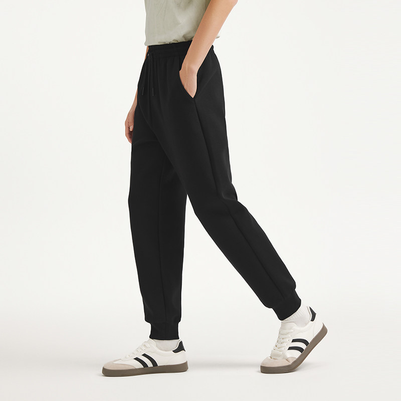 热风男士黑色长裤松紧腰束脚裤2025年秋季新款户外运动风宽松长裤