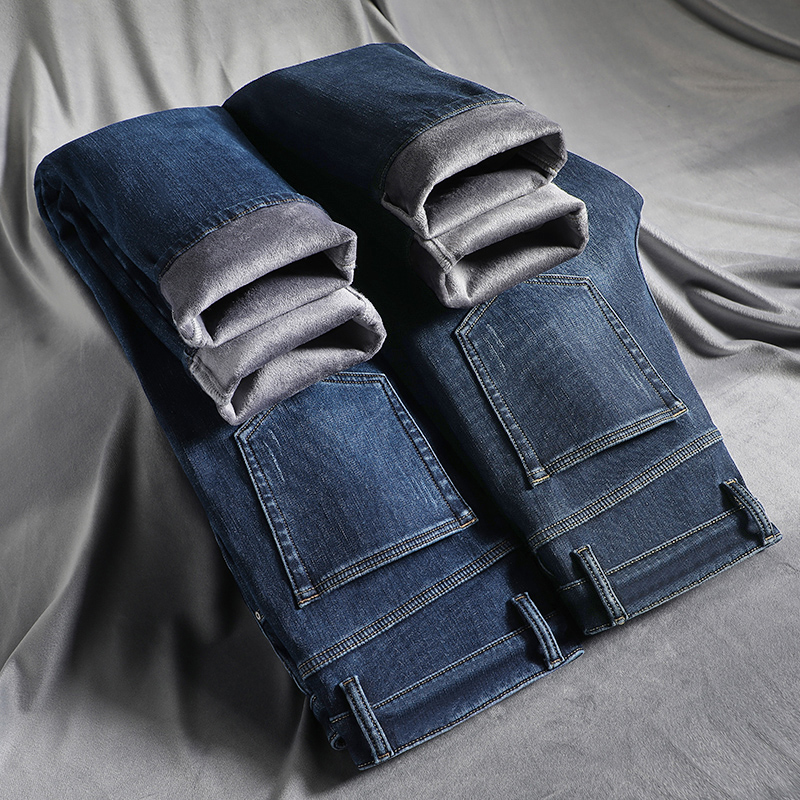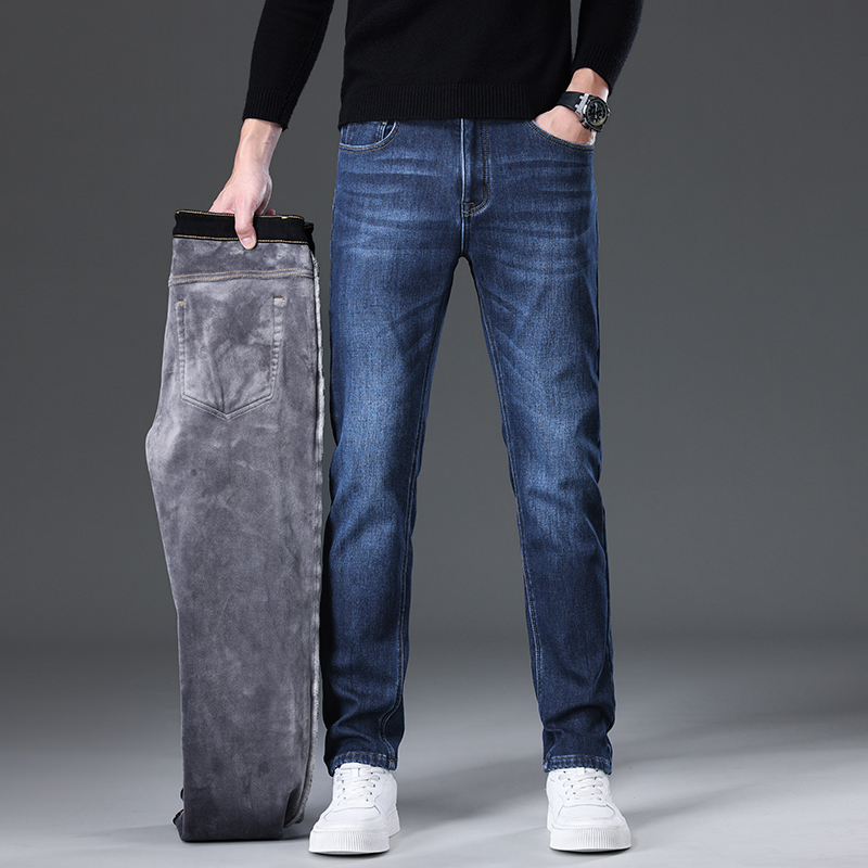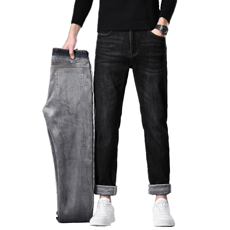 KP真维斯直筒男士加绒牛仔裤高弹中腰长裤显瘦百搭潮流时尚牛仔裤