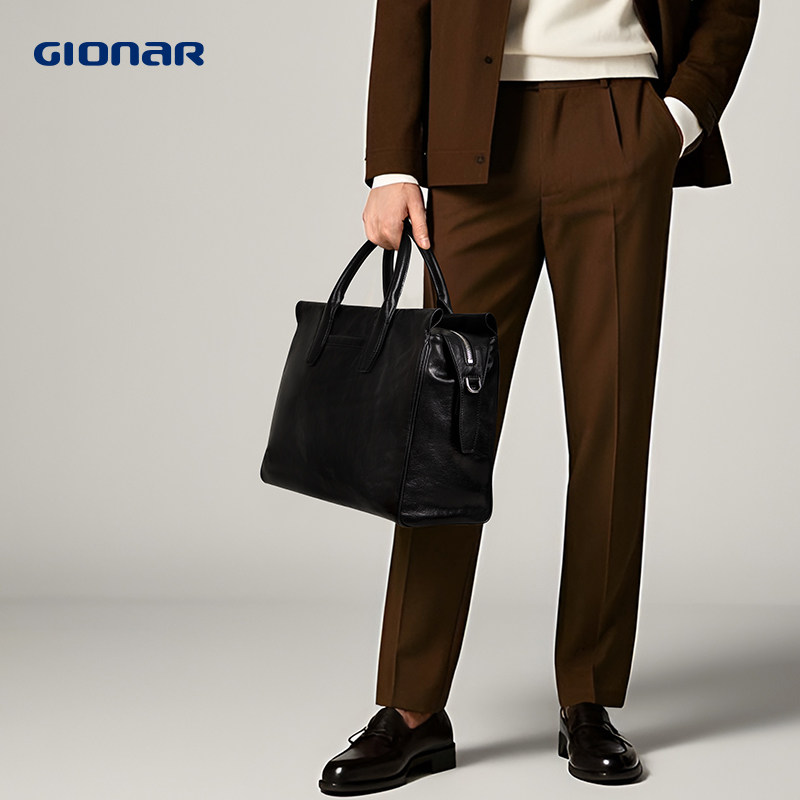 GIONAR男包高档品牌商务手提包大容量出差会议律师男士真皮公文包