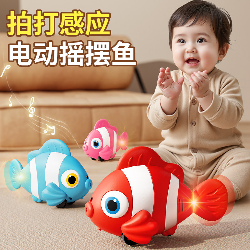 电动自动避障小丑鱼摇摆走路婴儿益智宝宝爬行引导会动仿真鱼玩具
