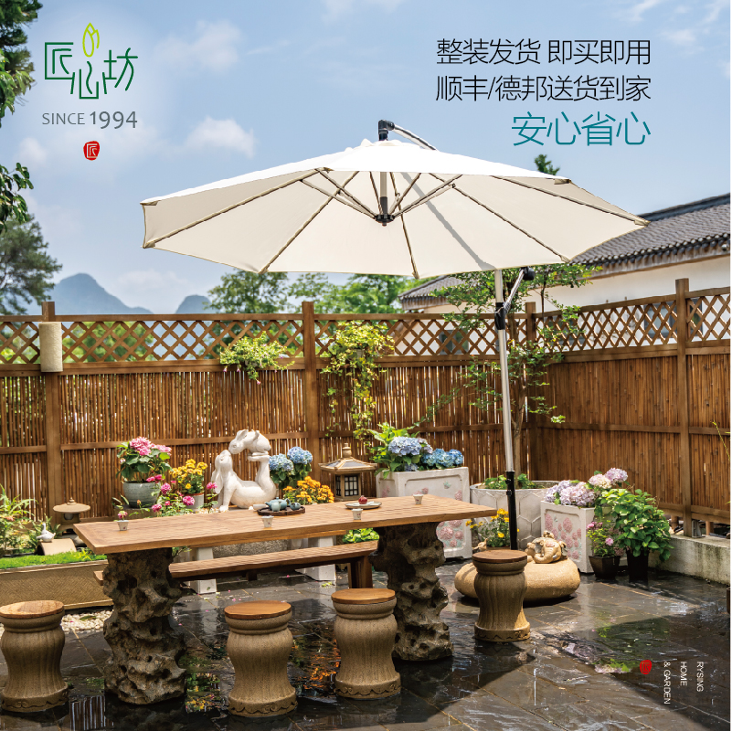 匠心坊中式庭院花园户外遮阳伞室外别墅庭院伞露台桌椅侧柱太阳伞