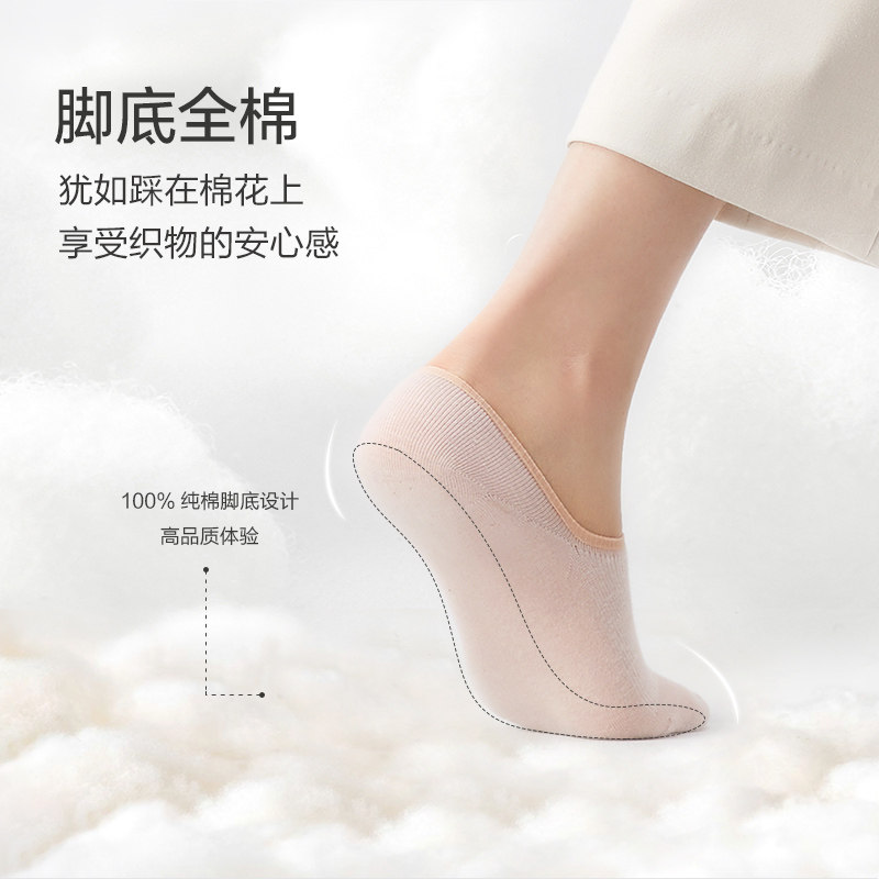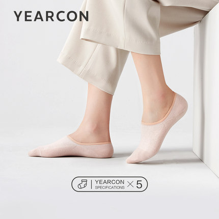 意尔康5双装袜子女船袜夏季纯棉糖果色浅口隐形袜女士休闲短袜