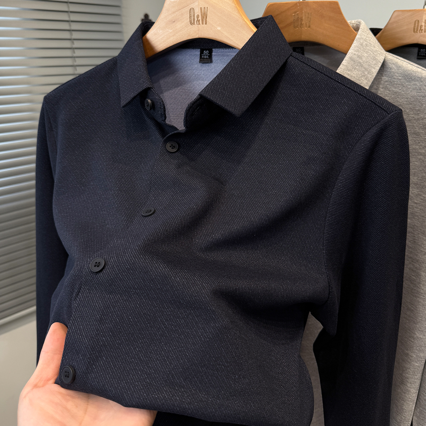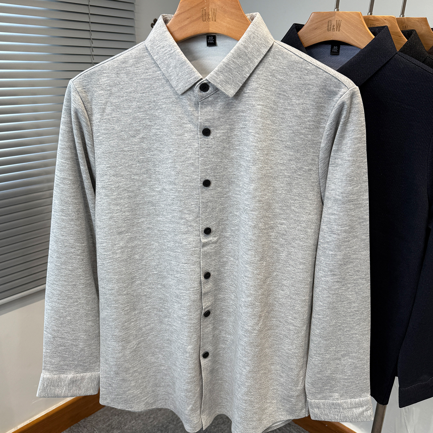 Q&W纯色衬衫男长袖商务休闲秋装中年男士衬衣韩版修身内搭寸衣服