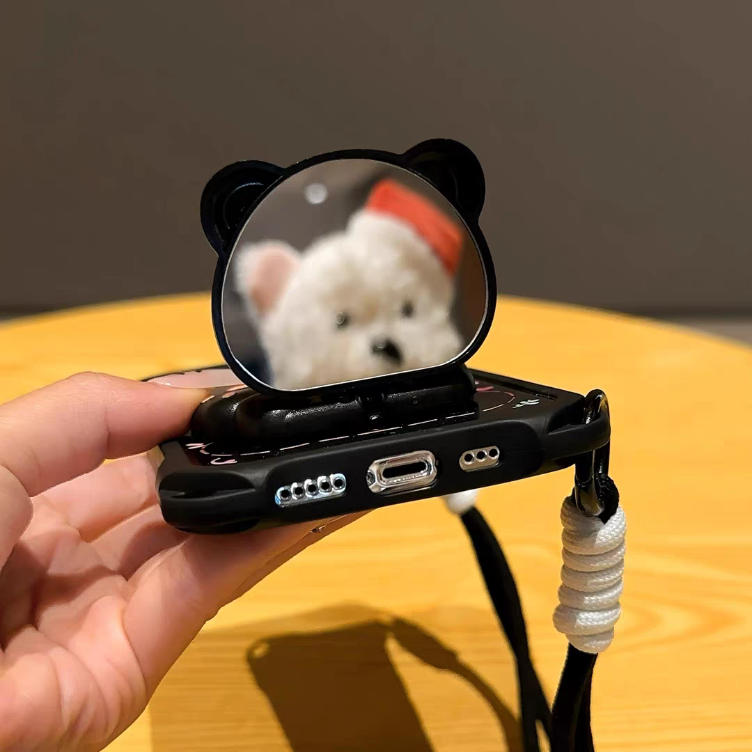 适用苹果16可爱小熊支架手机壳