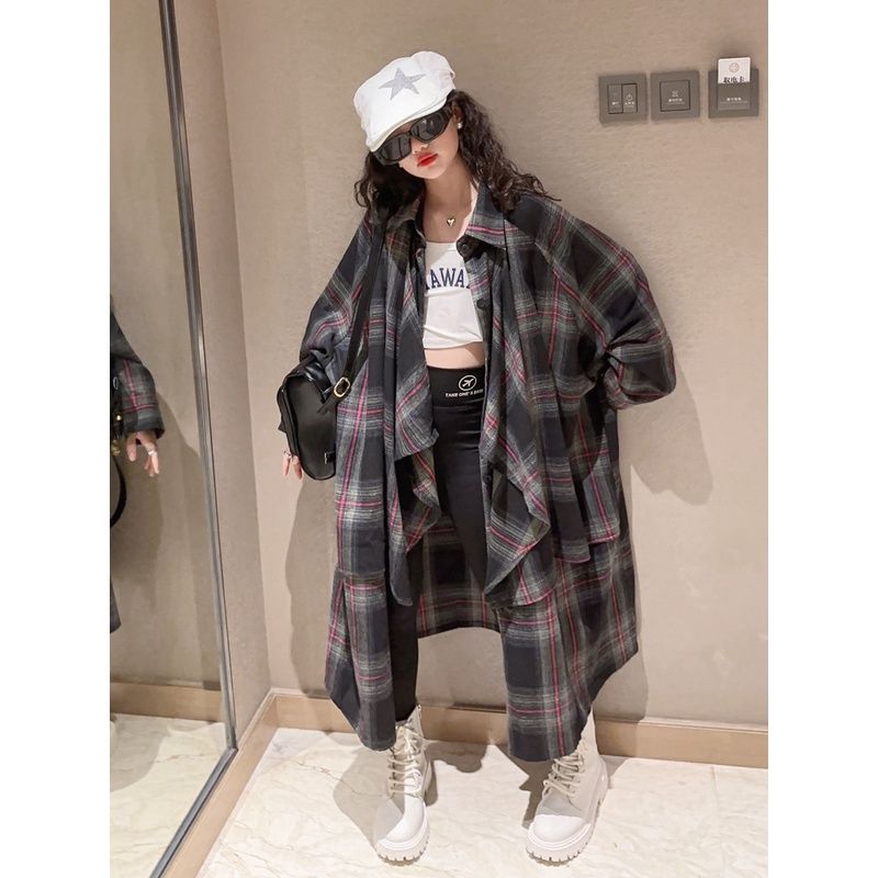 女童格子风衣2025秋装新款欧韩风休闲时尚中长款衬衫时髦儿童外套