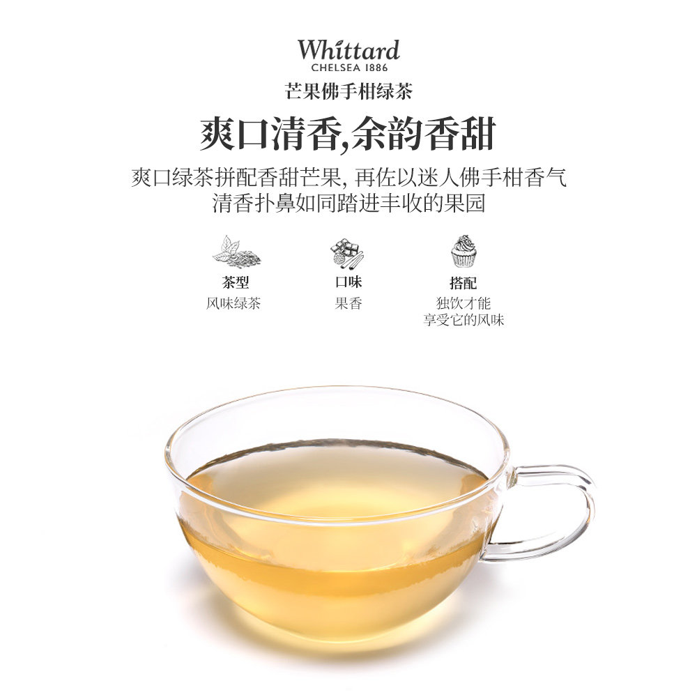 英国进口芒果佛手柑绿茶whittard