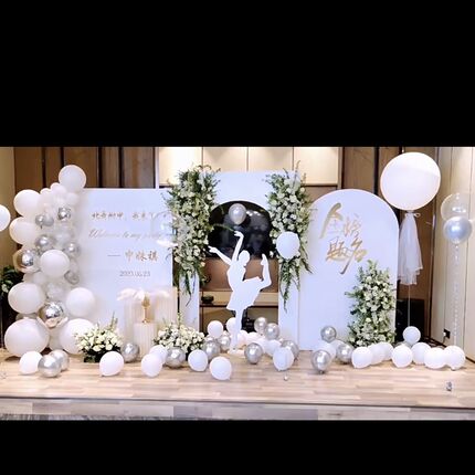 高级感白色女孩舞蹈系金榜题名升学宴酒店舞台背景墙气球布置KT板