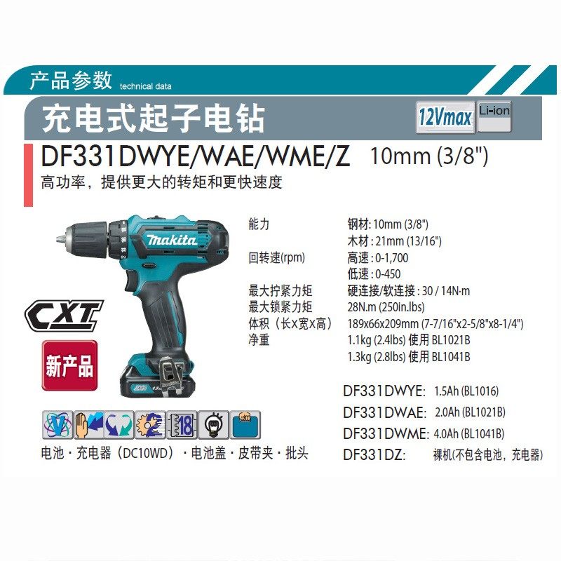 牧田12V无刷手电钻DF331/332/330/333充电式起子031/032/001/012