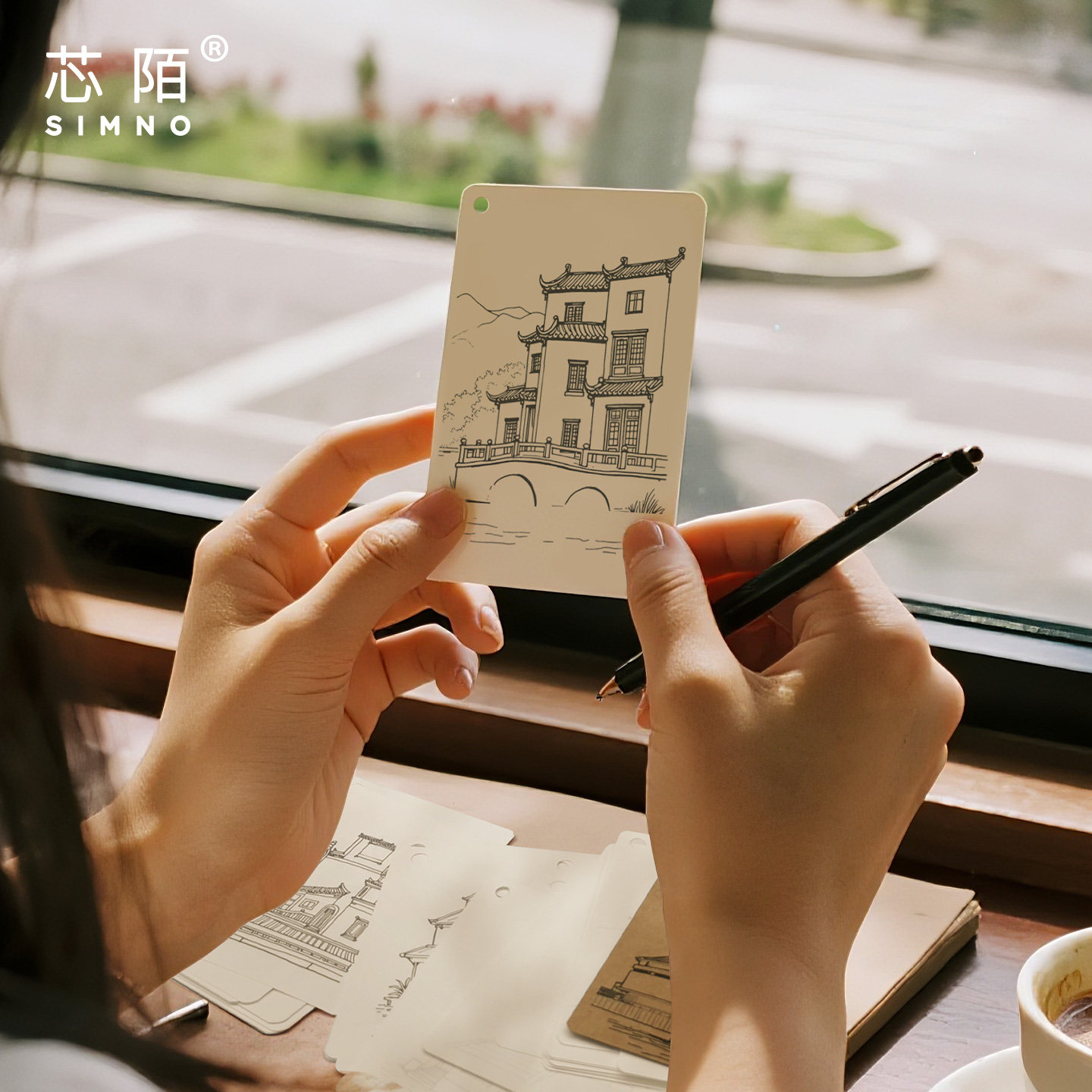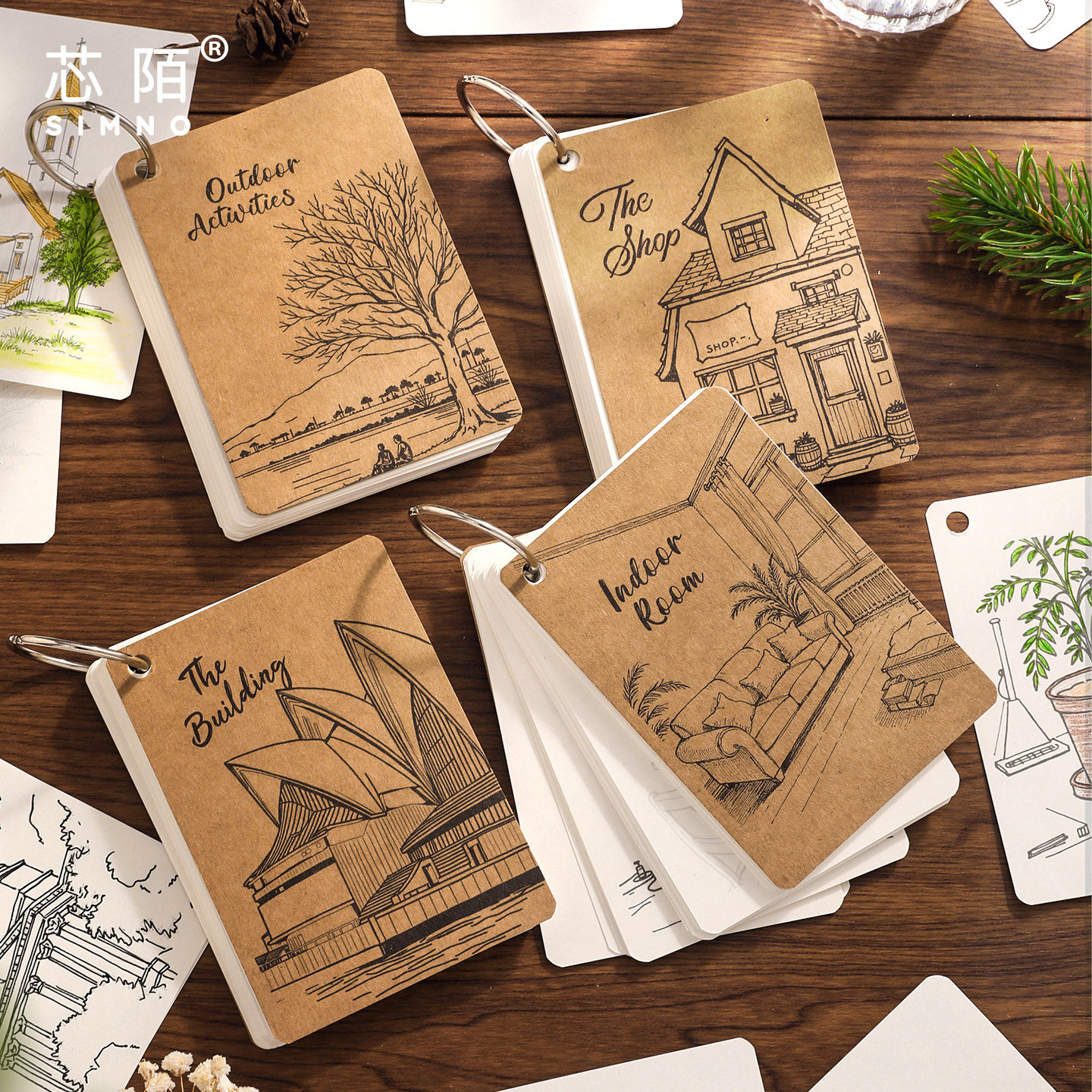 芯陌环扣速写涂色本美术手绘空白涂色册速写临摹练习画册控笔填色线稿描摹本迷你便携口袋本旅行打卡盖章本