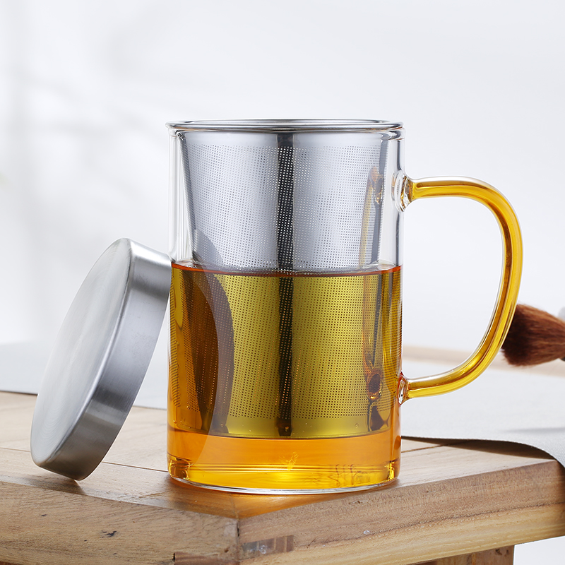 梵师耐热玻璃泡茶杯办公带盖茶水分离加厚大容量不锈钢过滤茶水杯
